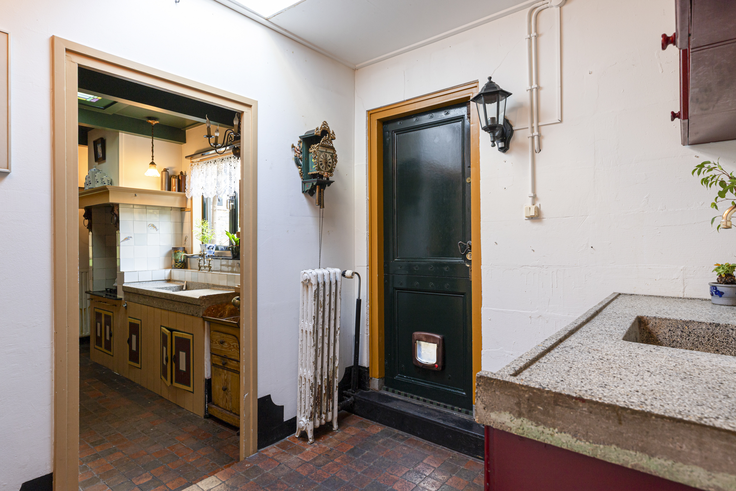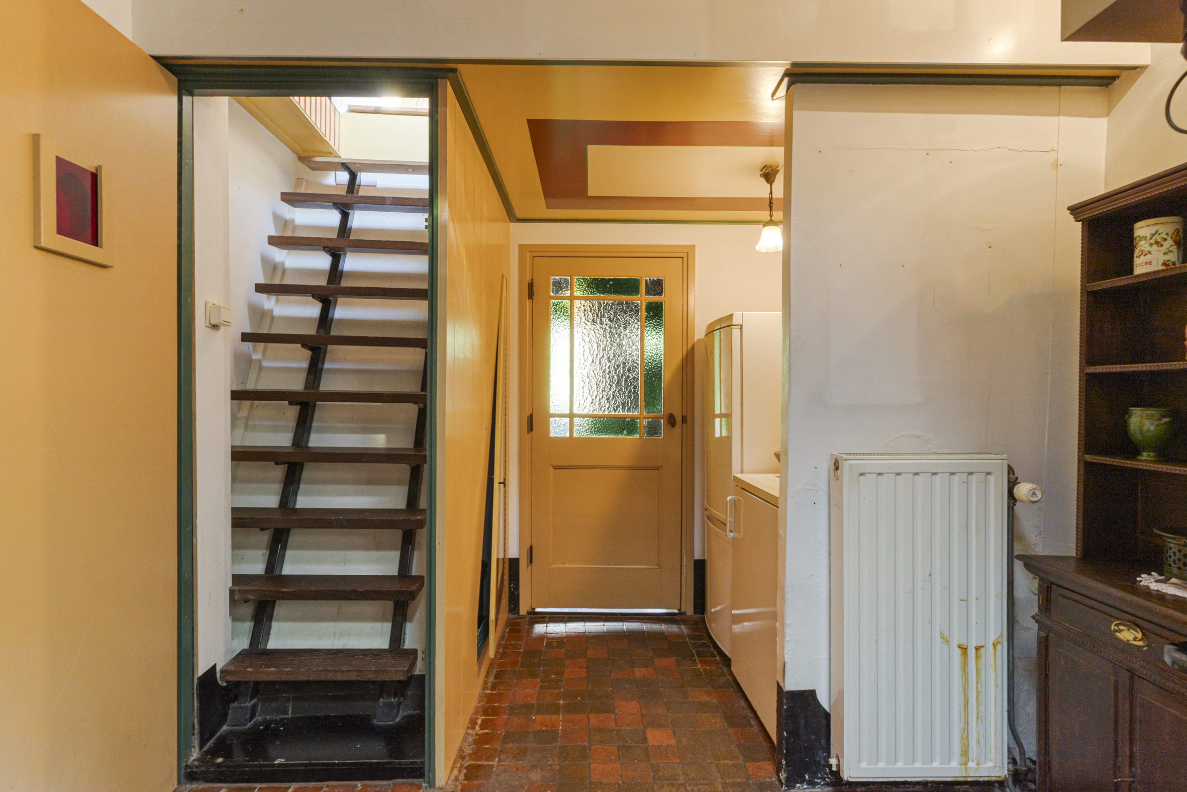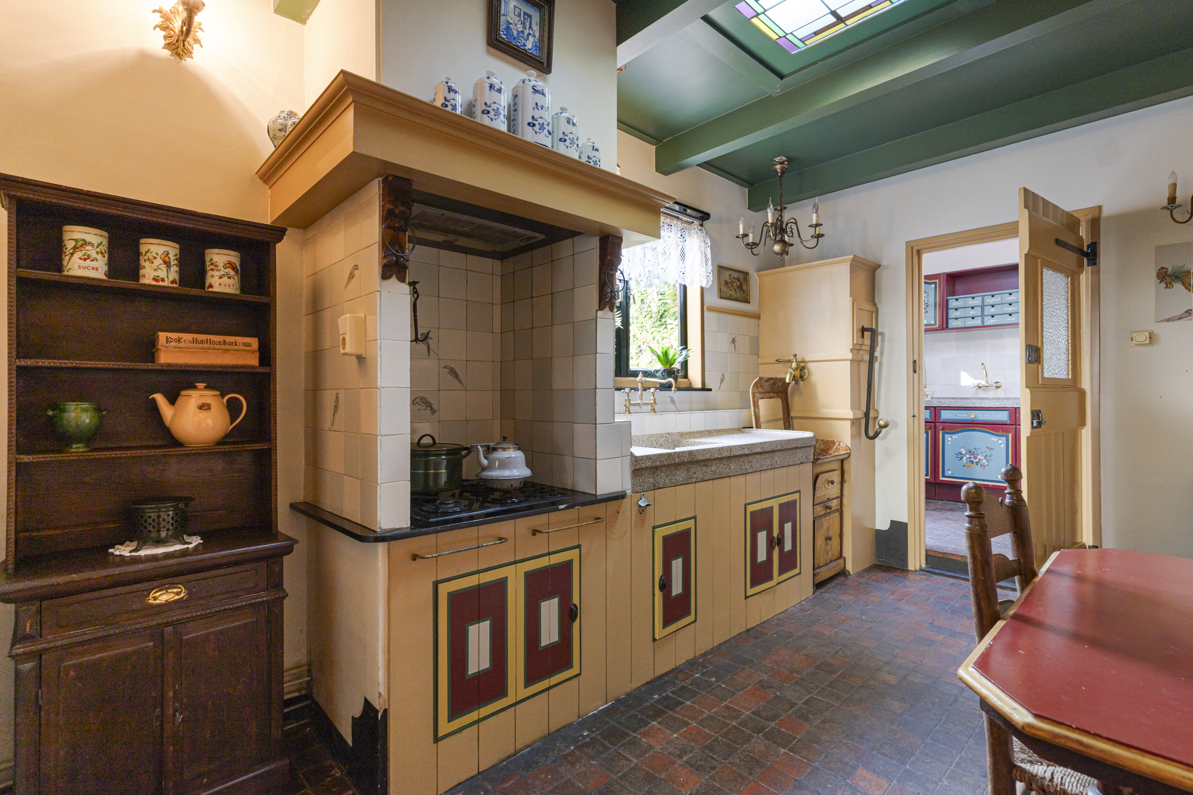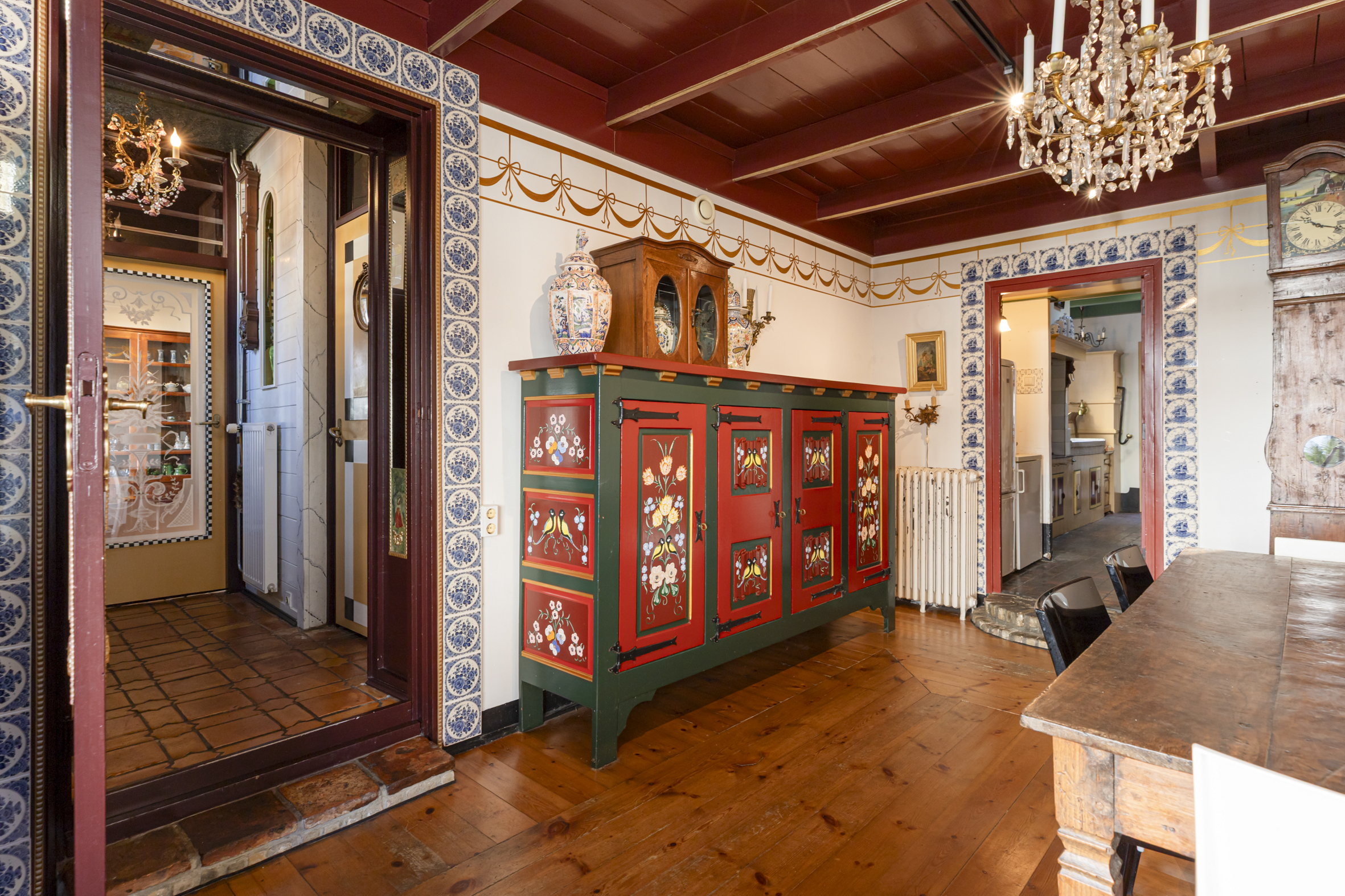 begane grond: entree, hal met meterkast en bijzonder Delftsblauw toilet. Aan de linkerkant bevindt zich de gezellige woonkamer met schouw en potkachel, een bedstee, balkenplafond en bijzondere tegelvloer. Open spiltrap naar de 1e verdieping. De ruimte aan de rechterzijde is in gebruik als eetkamer met eveneens een balkenplafond. Via 2 treden bereik je de sfeervolle keuken met veel authentieke elementen, zoals de schouw, de houten betimmering, het granito aanrechtblad en de tegelvloer. Trap naar de 1e verdieping. Via de keuken kom je in de bijkeuken met ook een granito aanrechtblad, een lichtkoepel, een lange gang en de deur naar de tuin.