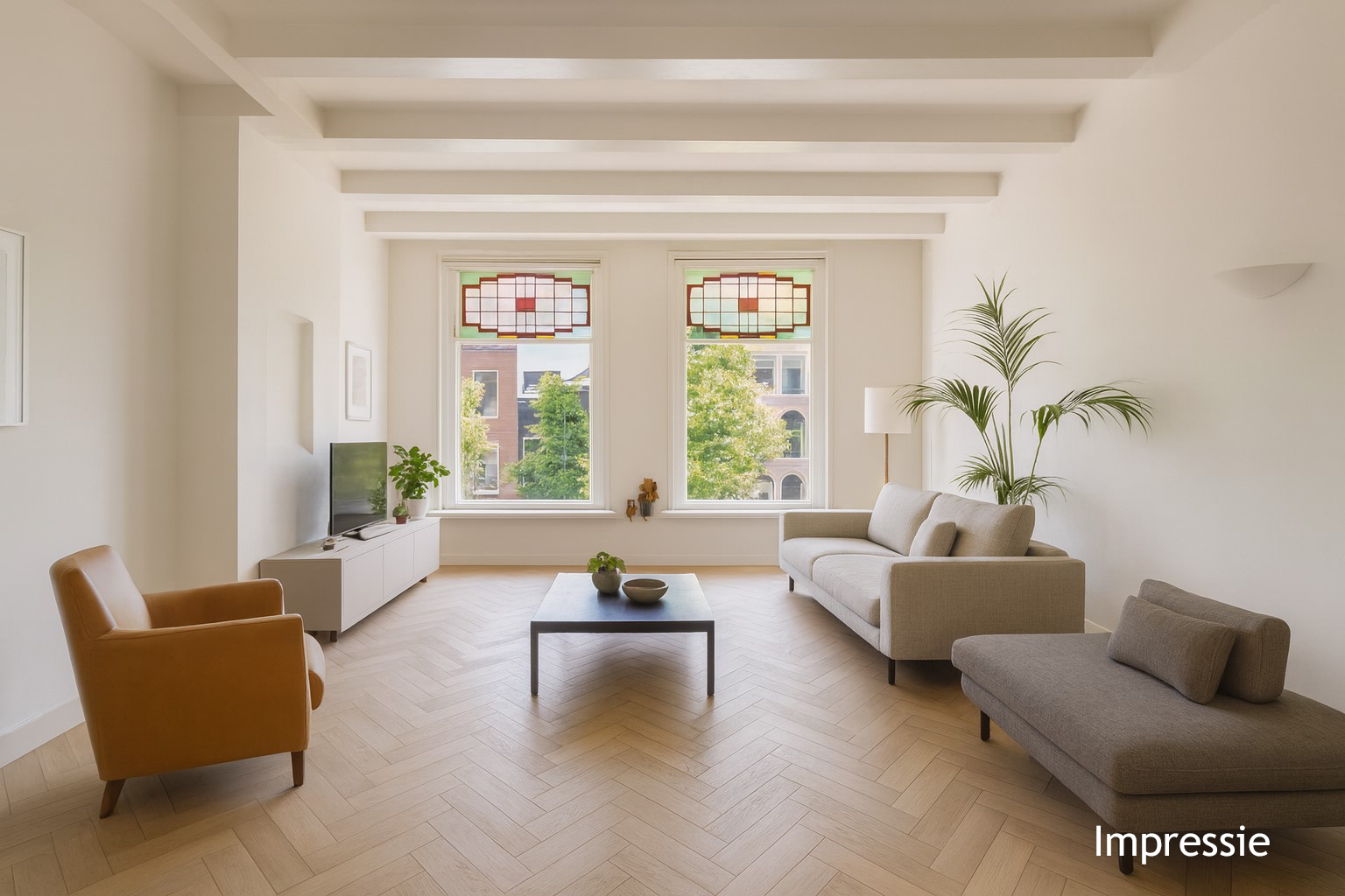 *De mooi hoge plafonds op de 1e verdieping zorgen voor een fijn gevoel aan ruimte. De sfeer wordt onder andere bepaald door de diverse karakteristieke details, zoals de originele tegellambrisering in de hal op de begane grond, de glas-in-lood ramen en de originele robuuste kapconstructie, die in het zicht is gehouden op de 2e verdieping.