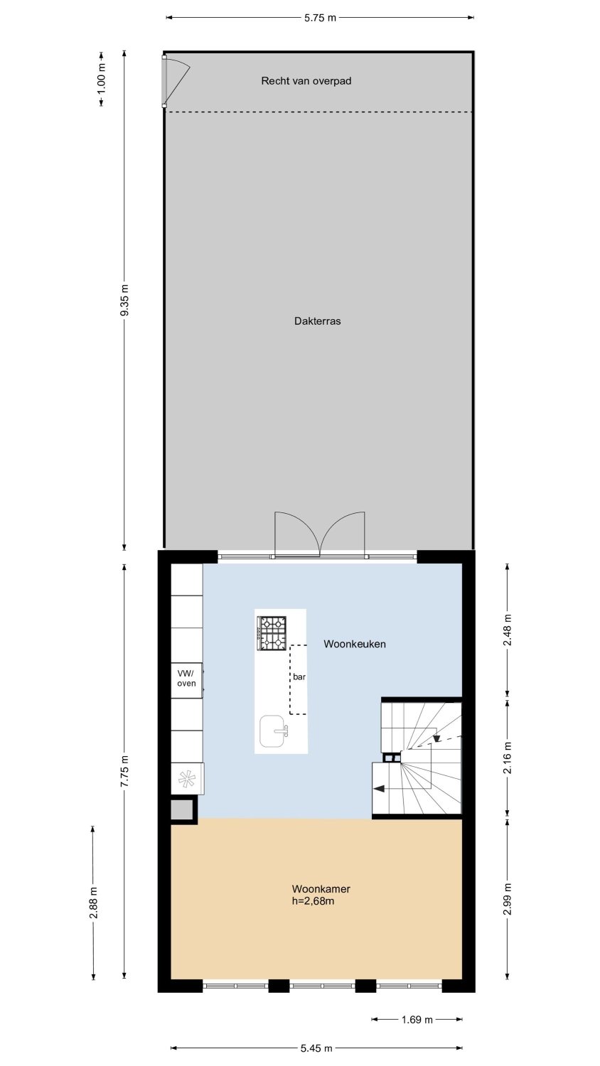 *Op de begane grond bevindt zich een aparte fietsenberging van 3 m².