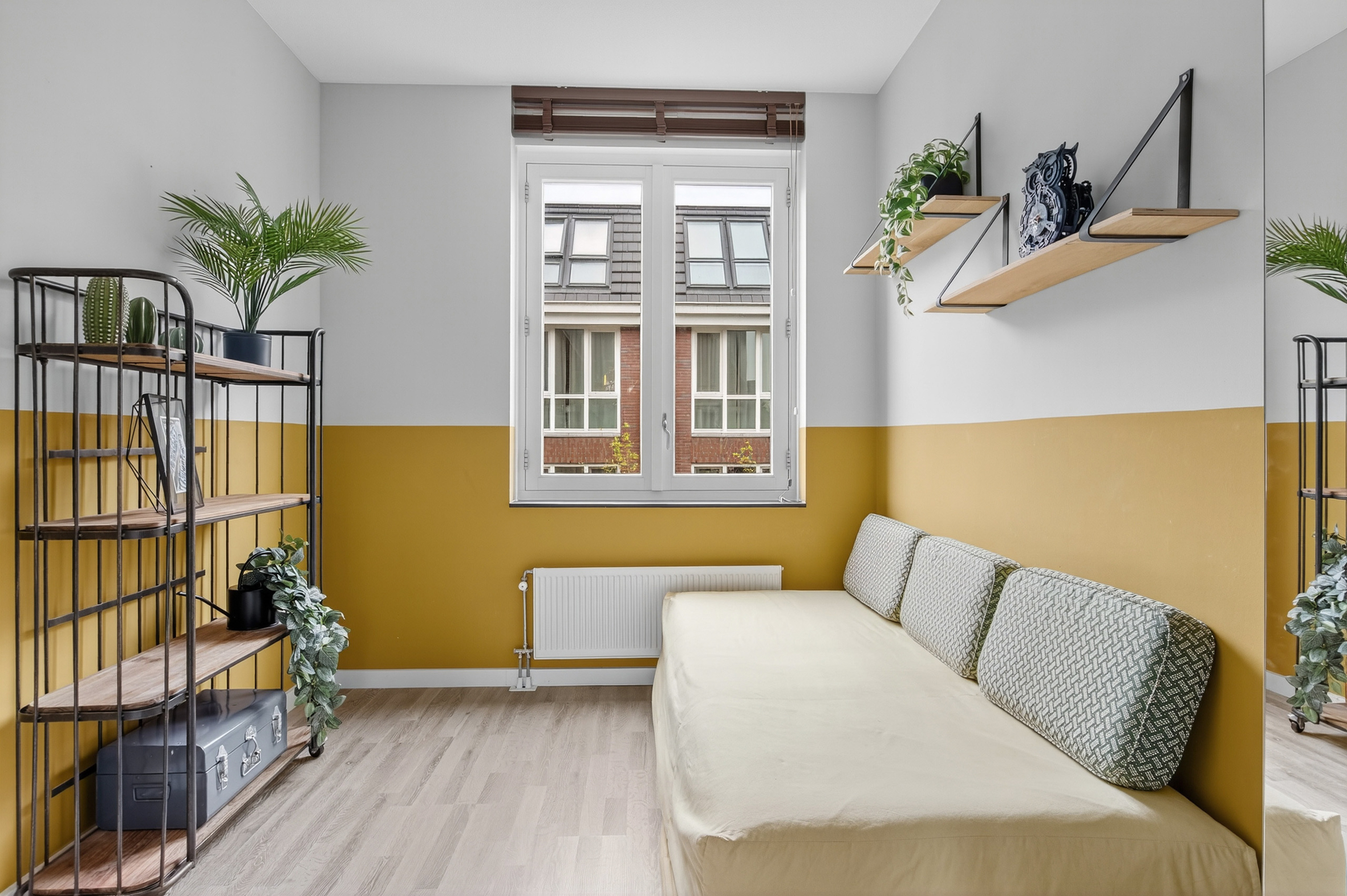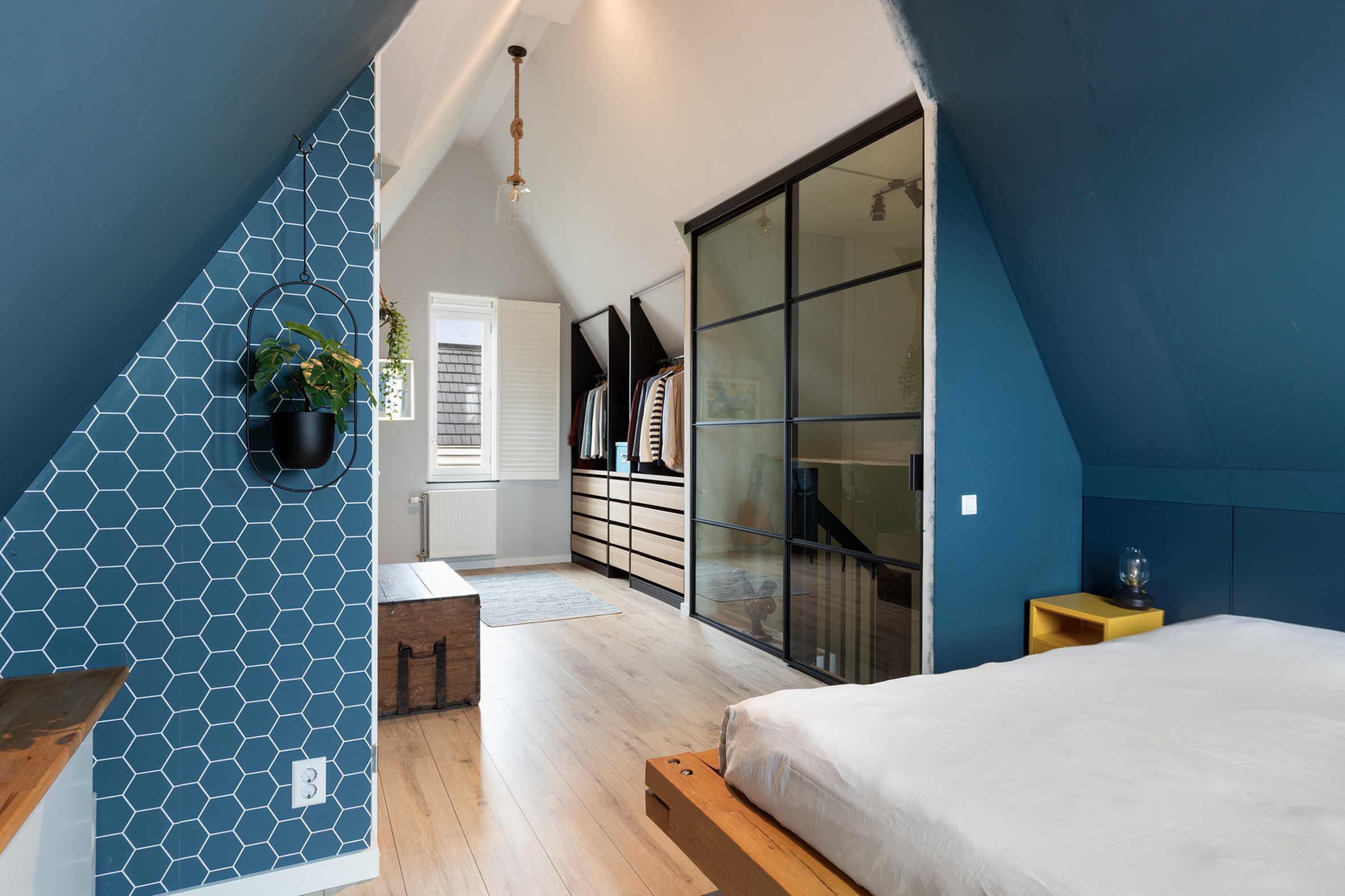 3e verdieping: riante open ruimte, van de trap af te sluiten middels een aluminium met glazen schuifdeur. Hier bevindt zich een enorme slaapkamer met een nokhoogte van bijna 4 meter! Vanuit hier heb je prachtig uitzicht op de binnenstad. Aparte was-/berg-/cv-ruimte.