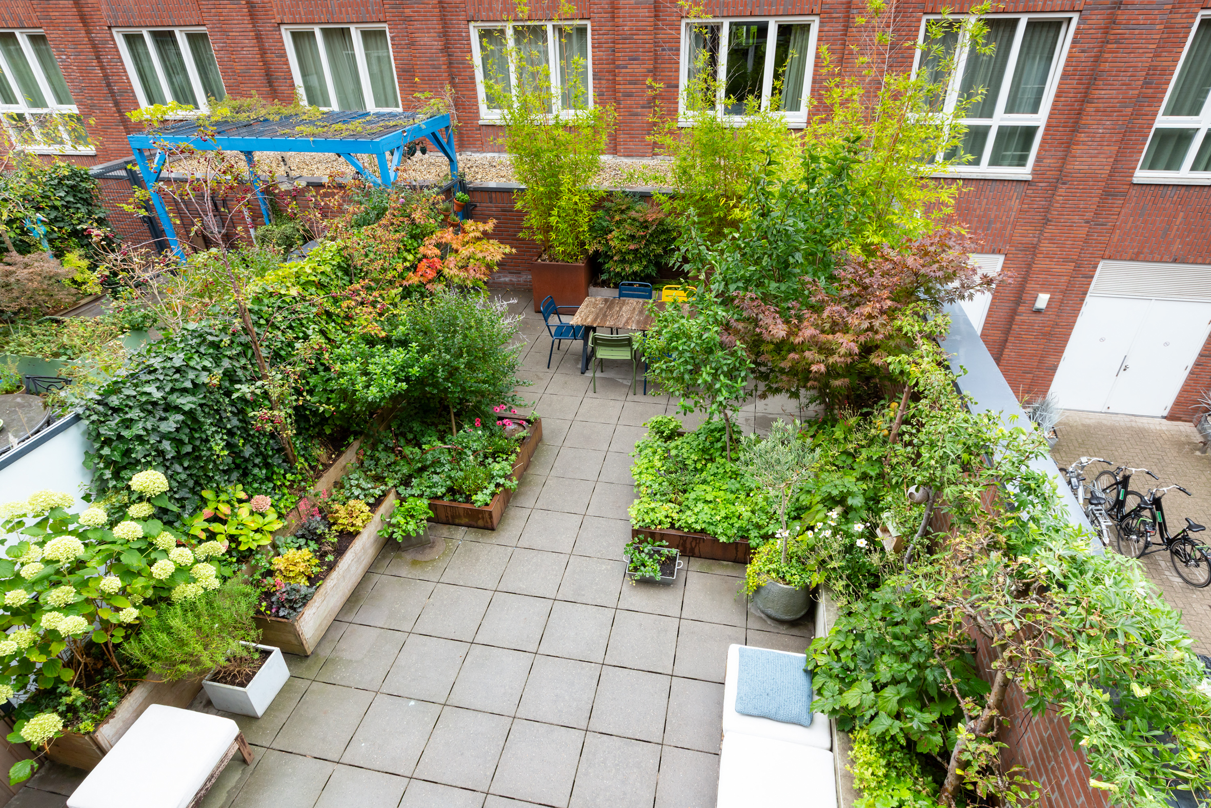 *Geweldige daktuin/terras aan de achterzijde van de woning. De tuin is voorzien van mooie bakken met veel planten en groen. 's Zomers kun je hier van circa 11.00 tot 19.00 uur van de zon genieten.