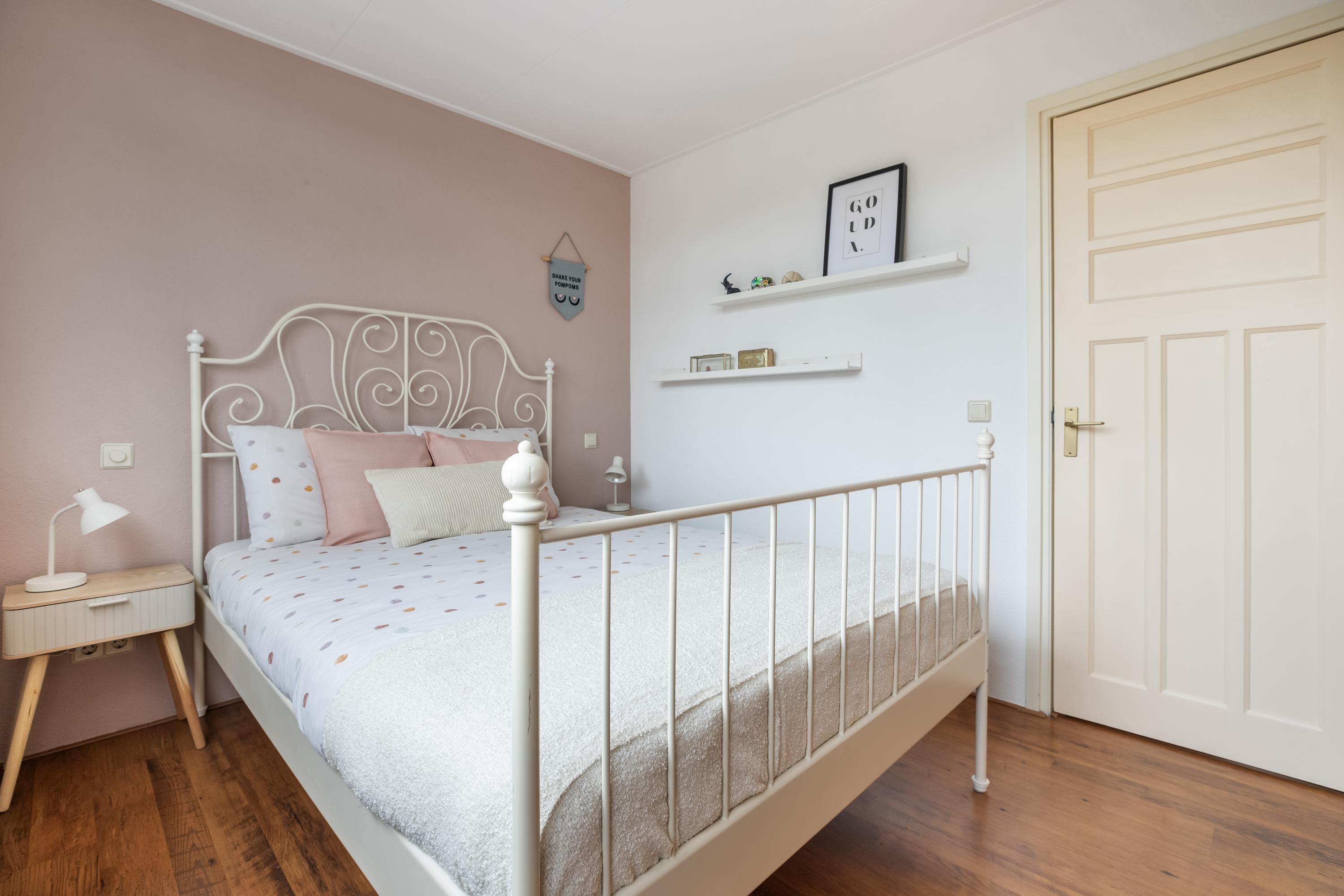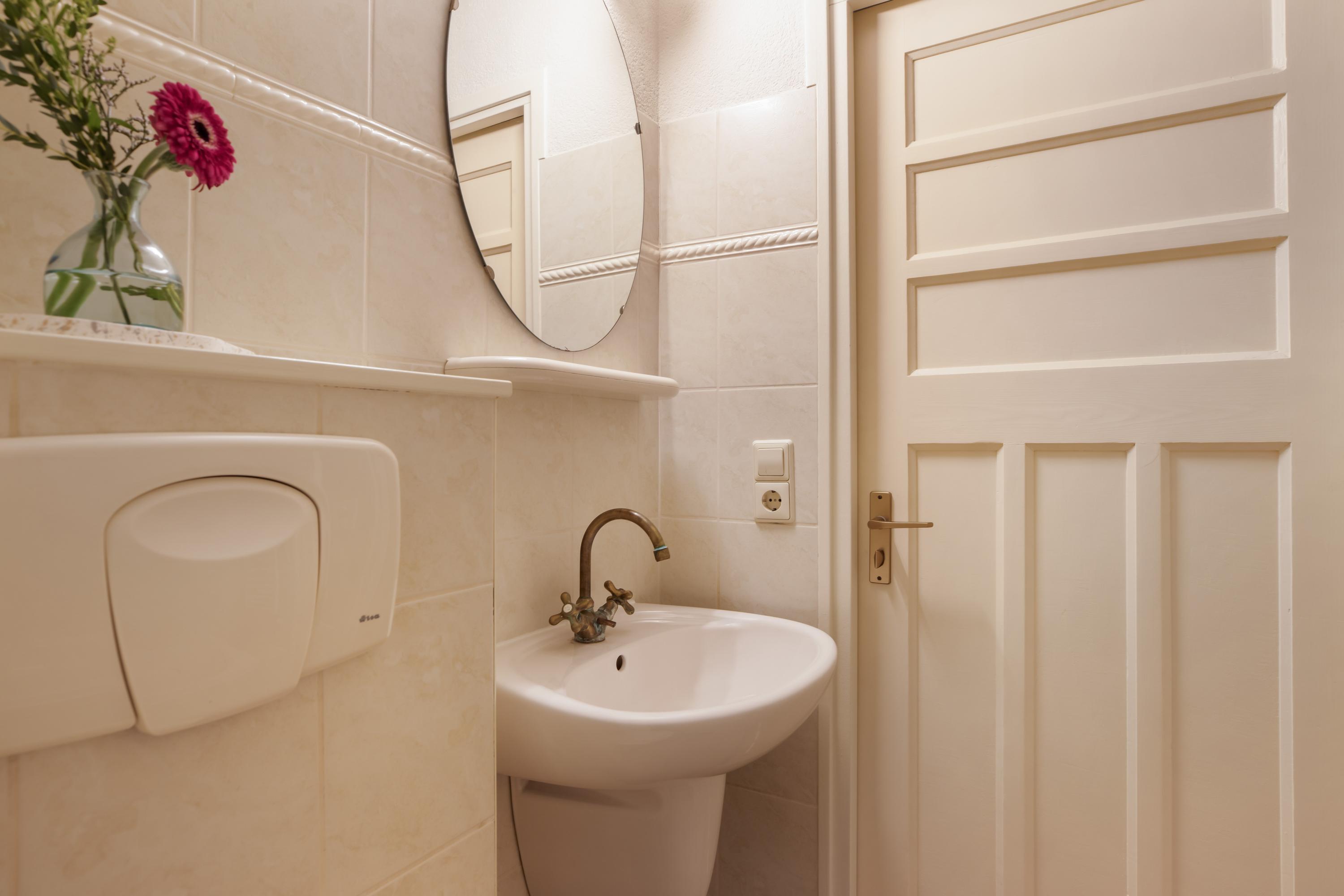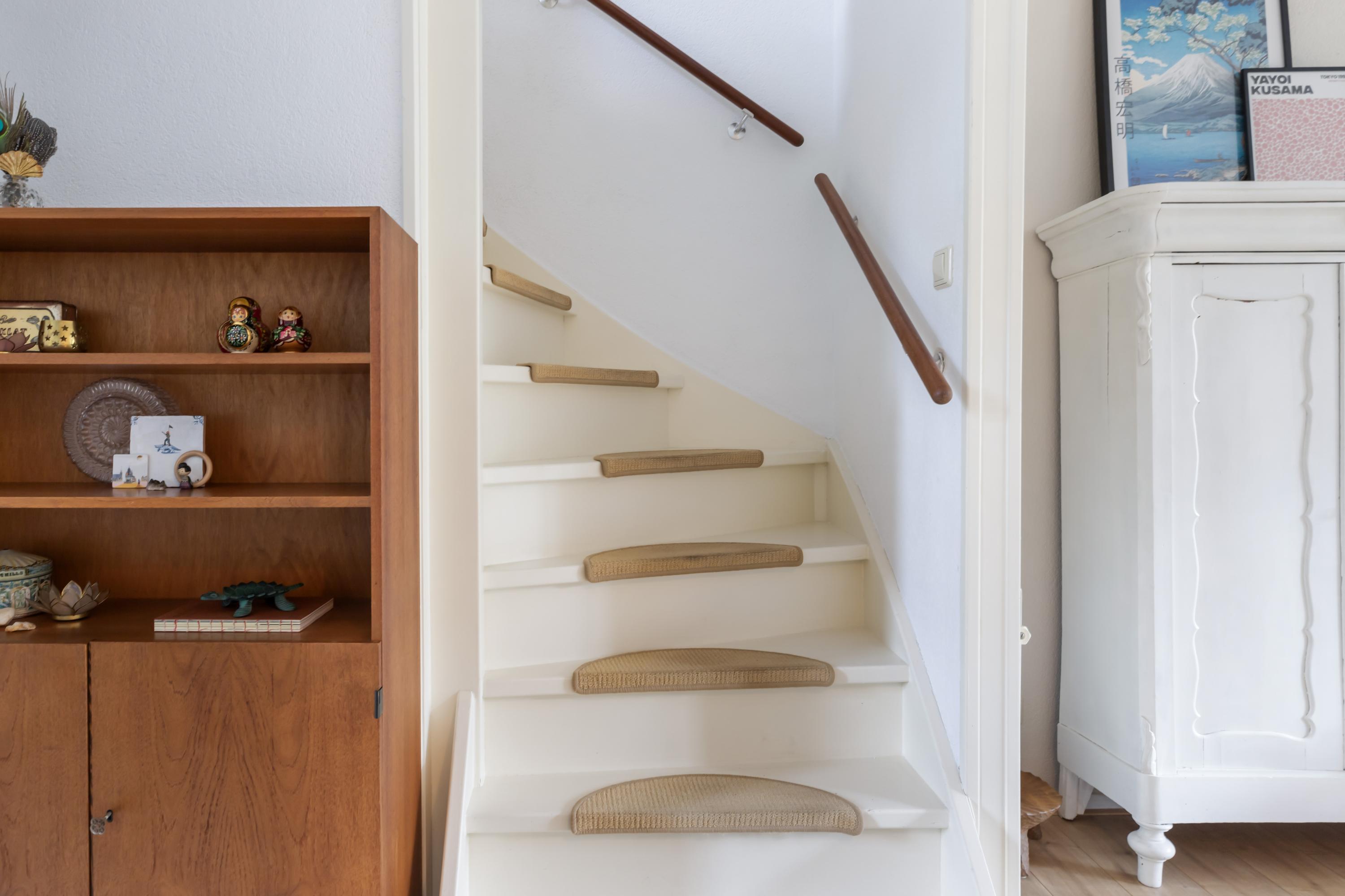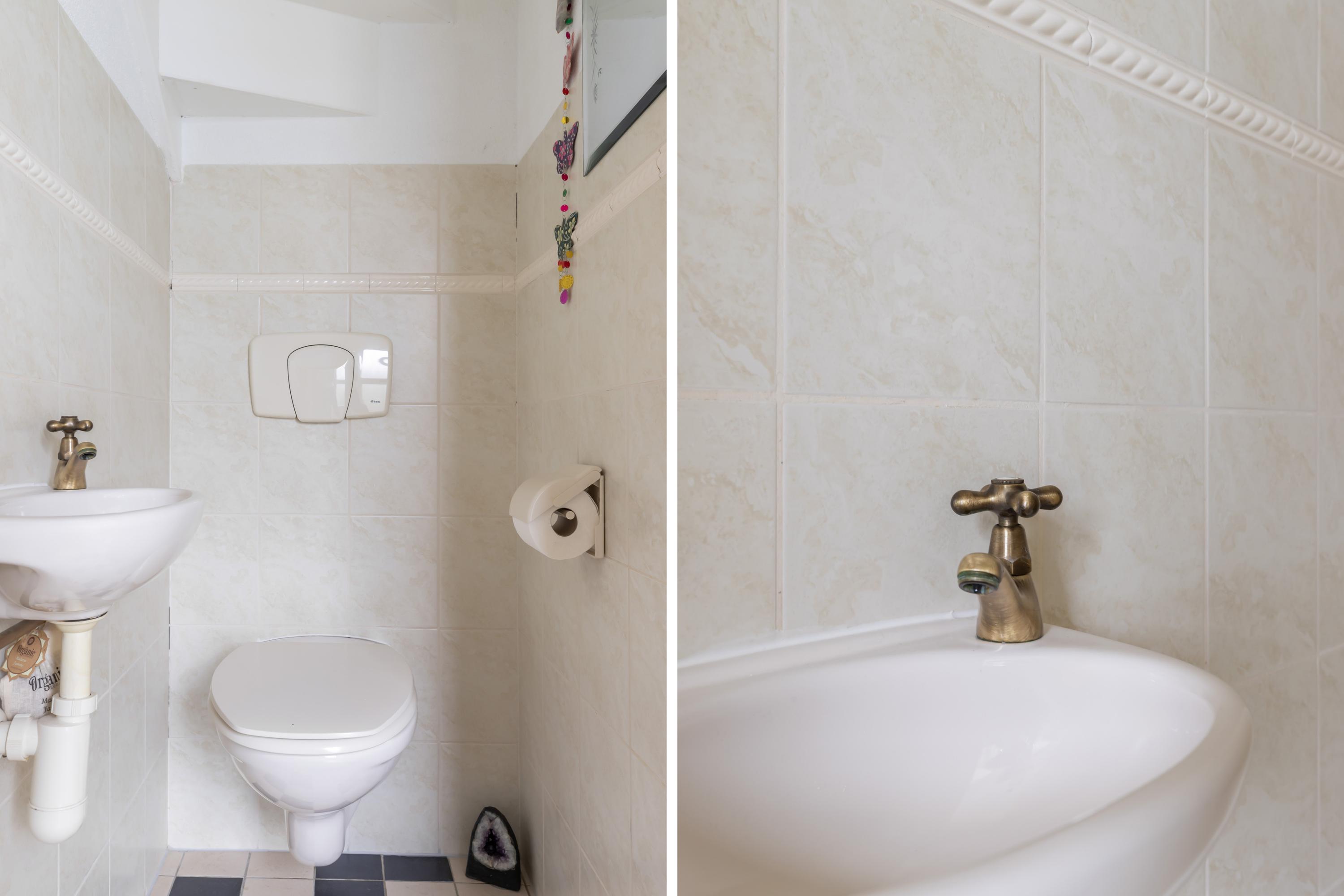 1e verdieping: overloop, slaapkamer achterzijde met vaste kast met louvredeuren, toegang tot het balkon. Inpandige badkamer voorzien van een ligbad, hangend toilet, wastafel en een designradiator. Schattige L-vormige slaapkamer aan de voorzijde met Velux dakraam en vliering met veel bergruimte (bereikbaar via een vlizotrap).