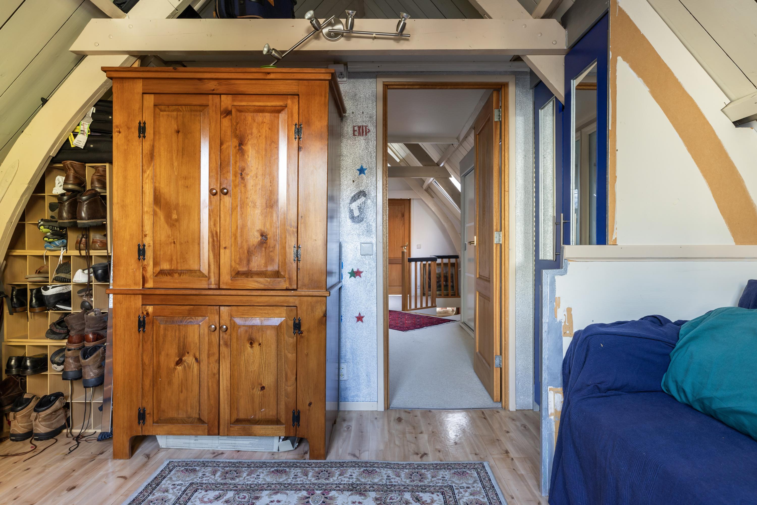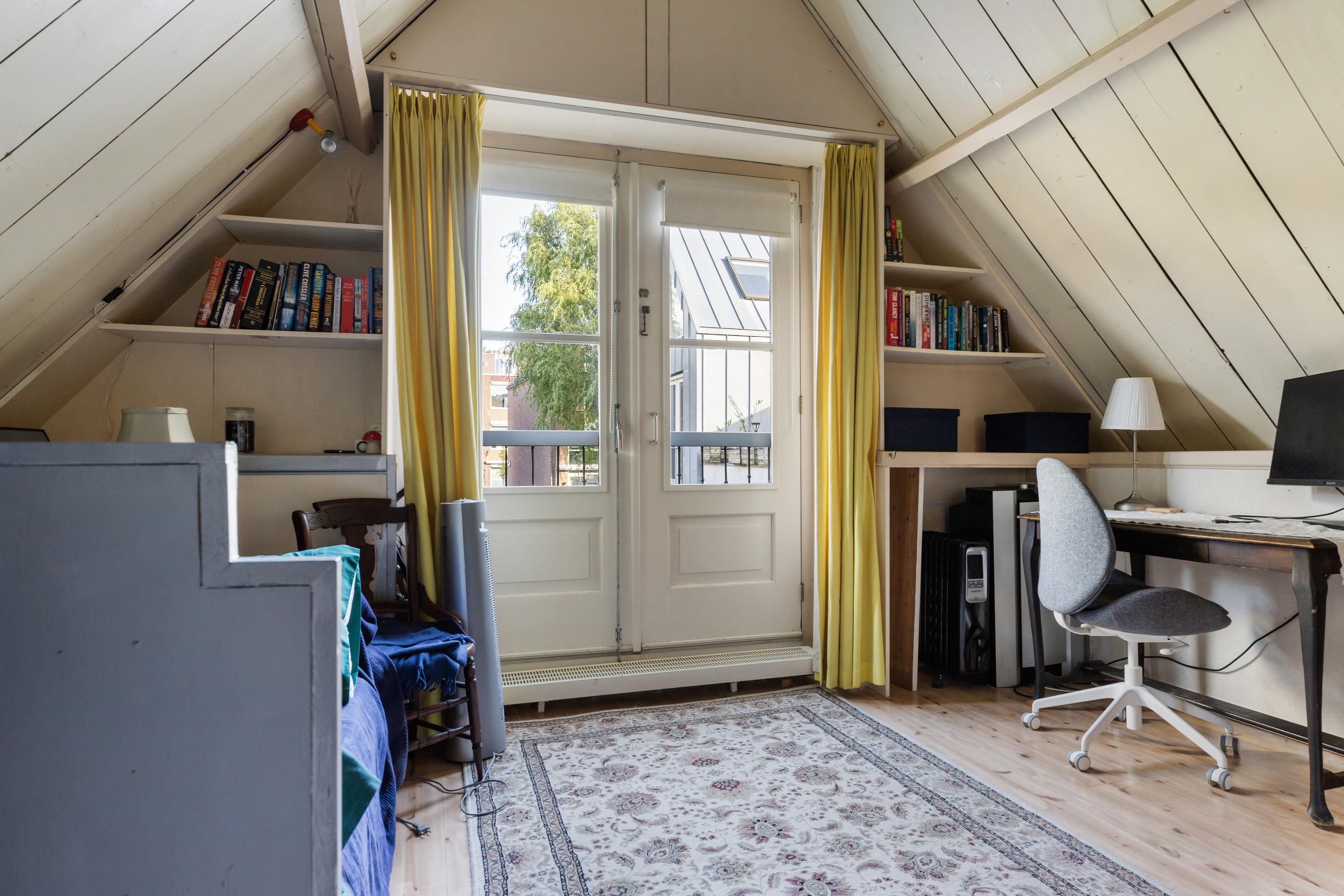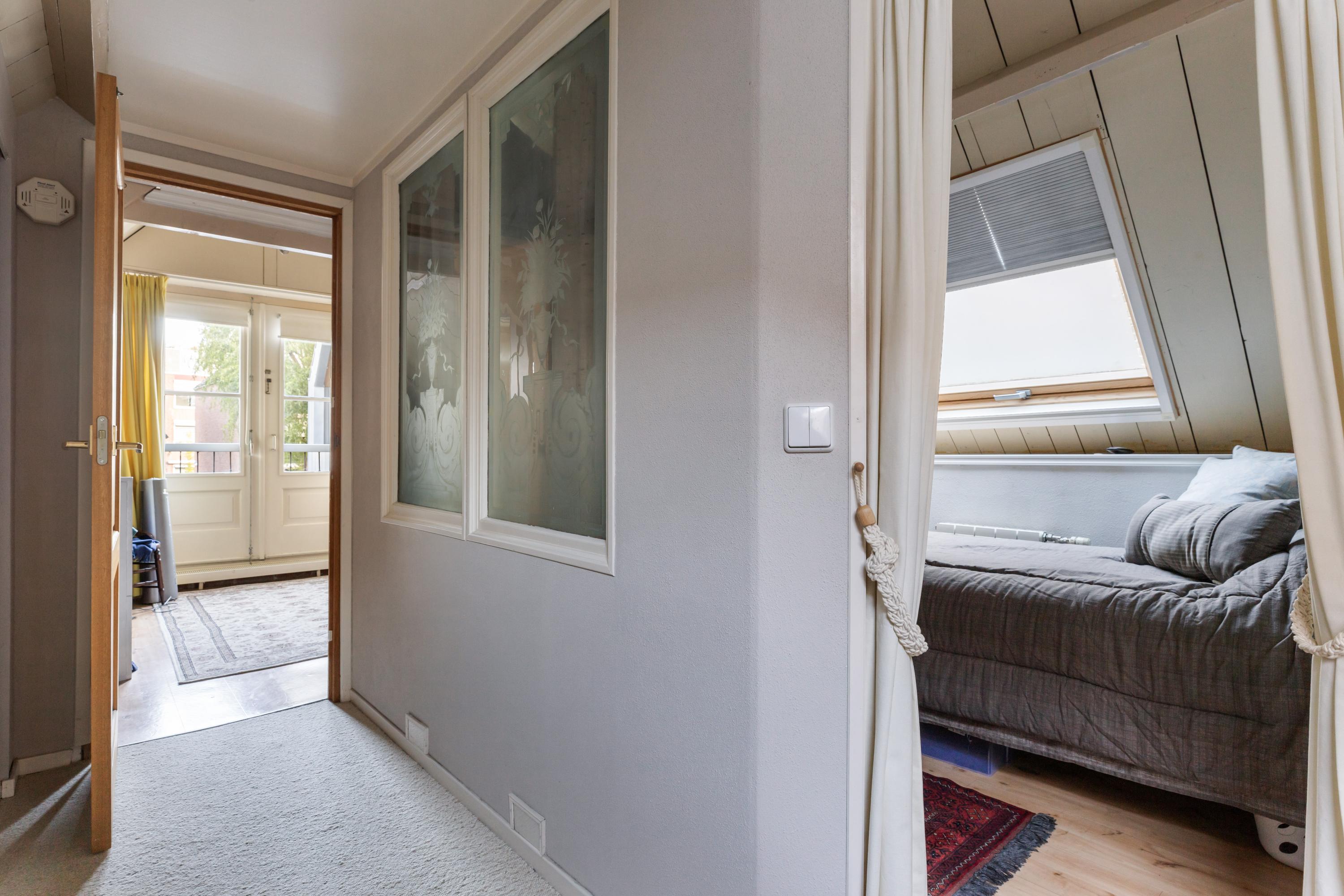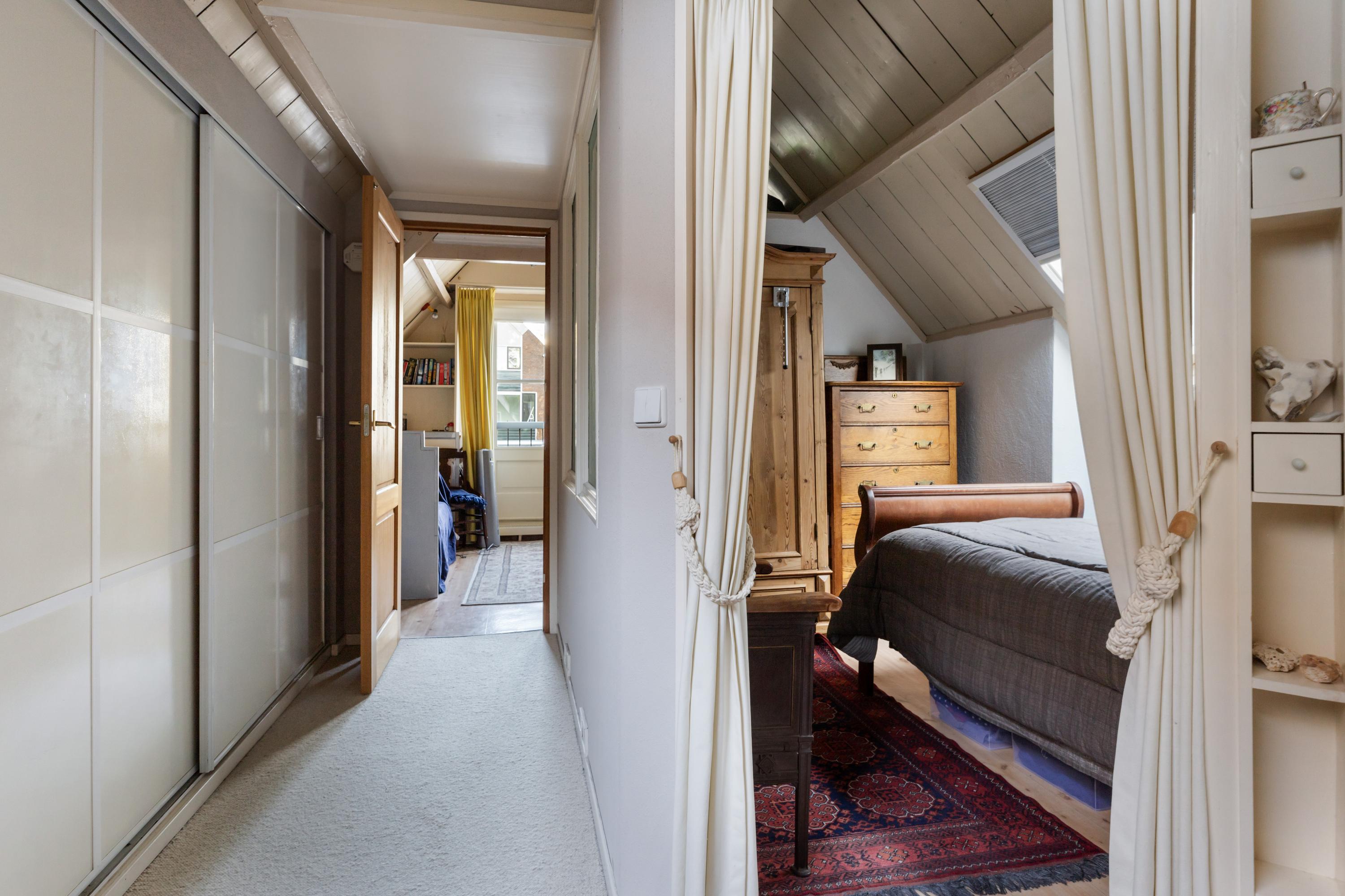 1e verdieping: overloop met Velux dakraam en een schuifkastenwand voorzien van een wasmachineaansluiting en de cv-ketel (2018). Grote slaapkamer aan de voorzijde met vaste kasten, airco en een eigen semi-open badkamer I, die is voorzien van een ligbad, wastafel met meubel en toilet. Slaapkamer in het midden met Velux dakraam, badkamer II met douchecabine, wastafel met meubel, een bidet en een Velux raam. Ruime slaapkamer aan de achterzijde met openslaande deuren en een Frans balkon.