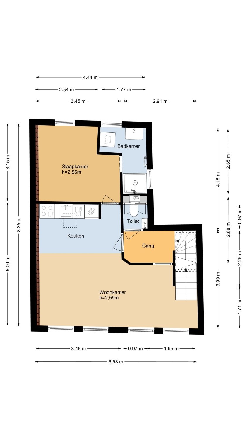 Wat een parel! Geheel gerenoveerd, instapklaar 2-kamer appartement met luxe keuken en badkamer, energielabel A en een fantastisch dakterras met uitzicht over de historische binnenstad!Bouwjaar circa 1830, gerenoveerd in 2019, het woonoppervlak bedraagt 45 m² en de inhoud 162 m³.
