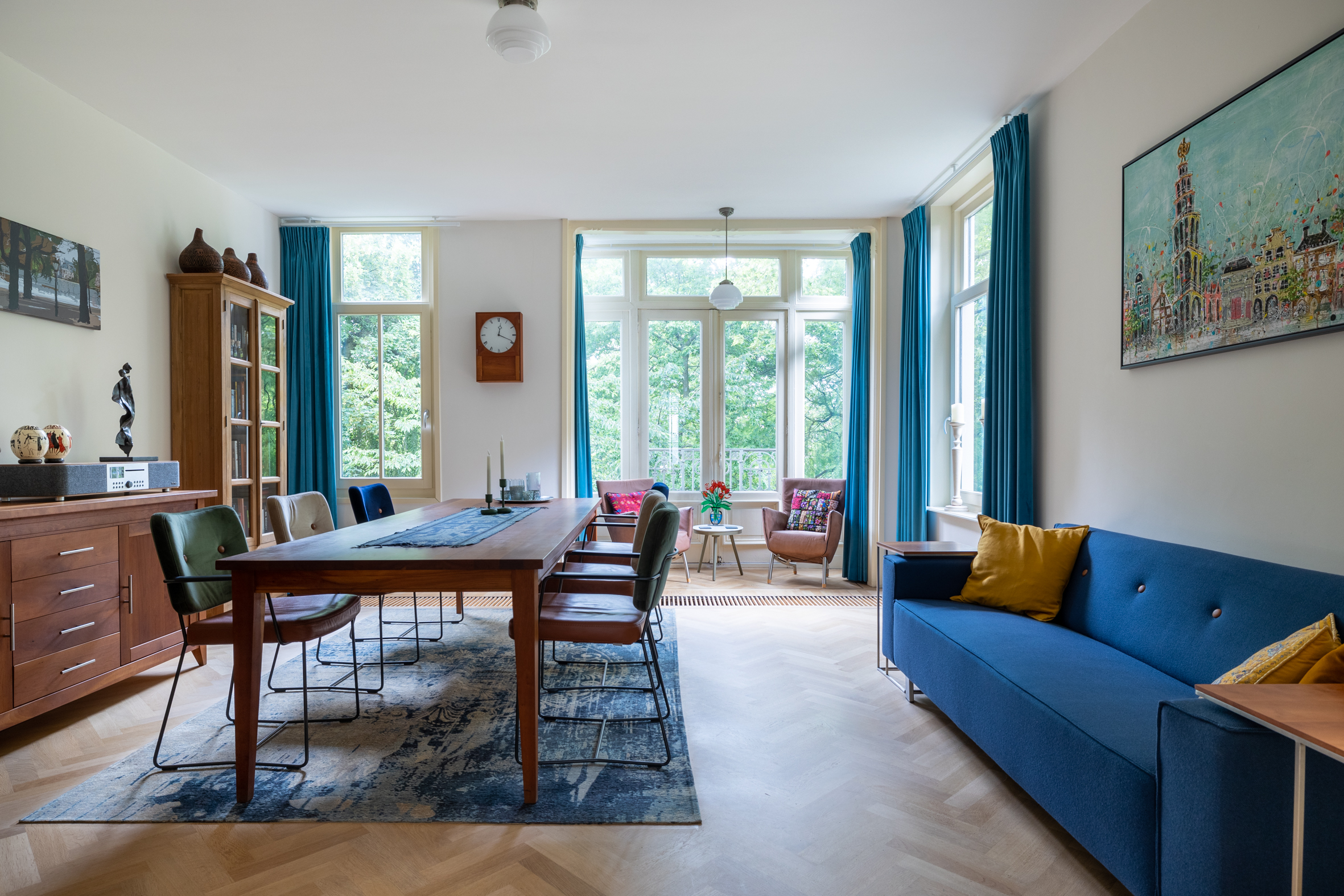 * Dit fraaie herenhuis biedt verrassend veel ruimte. Het betreft hier een dijkwoning, waar je met name aan de parkkant goed de grootte van het object kunt zien.