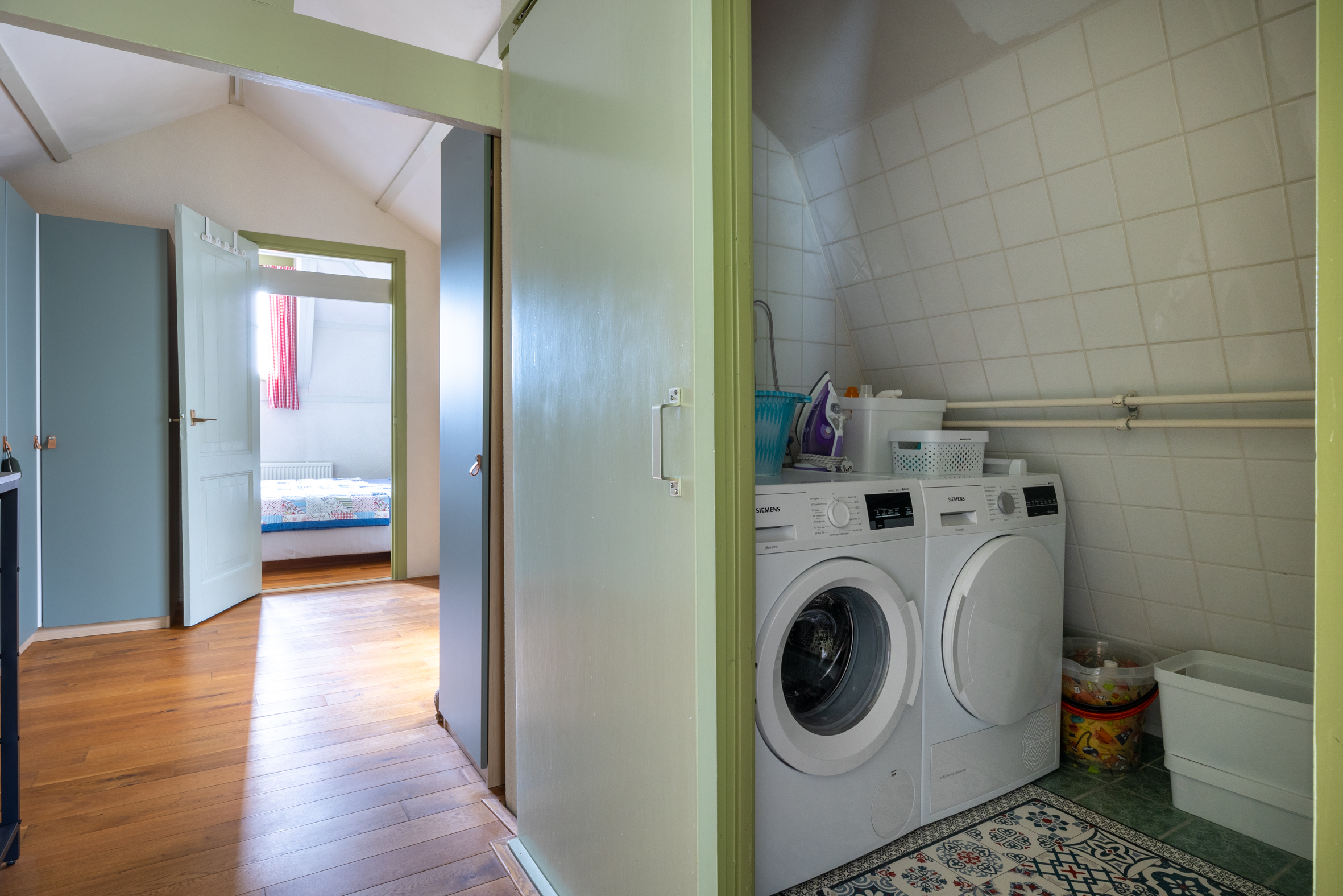 2e verdieping: ruime overloop met groot Velux dakraam, vaste kasten op maat, betegelde was-/cv-ruimte met aansluiting wasmachine en plaats droger alsmede recent vernieuwde cv-ketel (Vaillant, 2021). Slaapkamer aan de achterzijde met 2 grote Velux dakramen en 2 schuiframen met prachtig uitzicht op het park, korenmolen ‘t Slot en over de Goudse binnenstad. Slaapkamer aan de voorzijde met dakkapel en Velux dakraam. Tussengelegen badkamer II in mooie uitvoering met douche, toilet en wastafel. De tweede verdieping is eveneens voorzien van een eikenhouten vloer.
