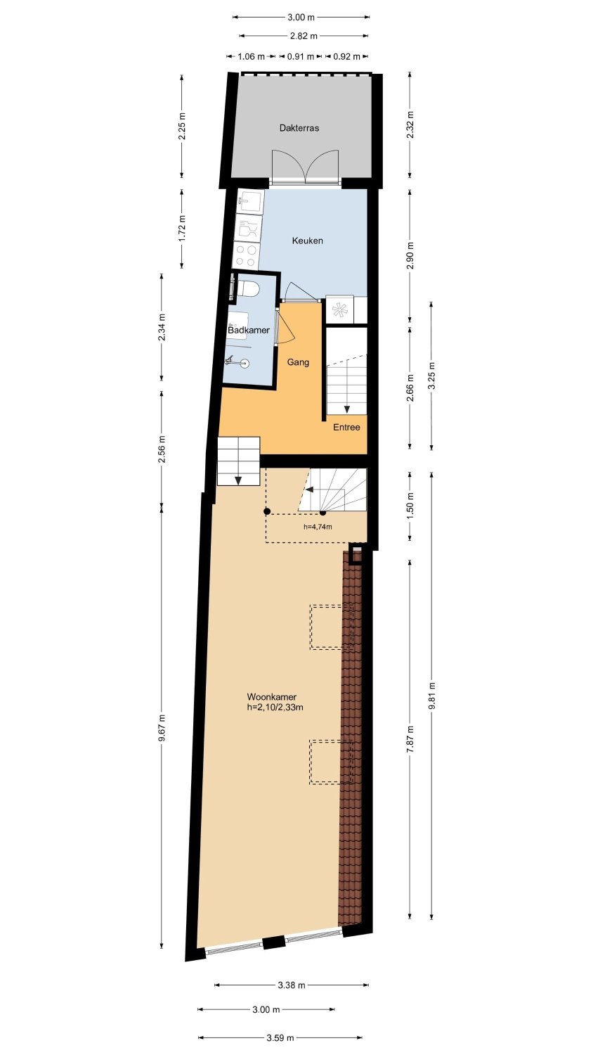 begane grond: entree via gezamenlijke hal met de trapopgang.