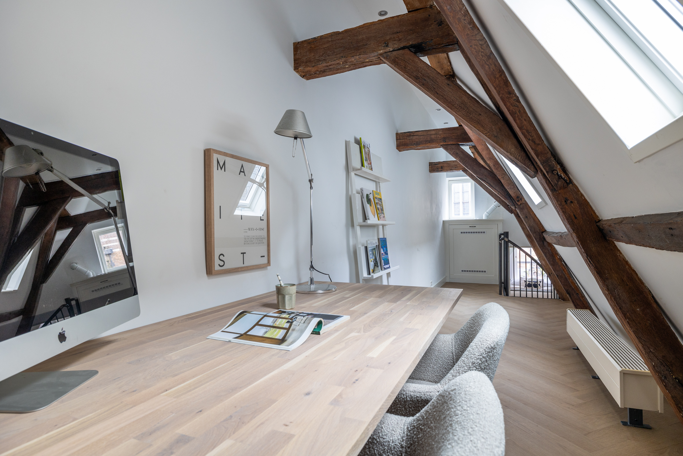 3e verdieping: open zolderruimte/slaap-/werkkamer onder het dak, voorzien van drie Velux dakramen, opstelplaats voor de wasapparatuur en de cv-ruimte.