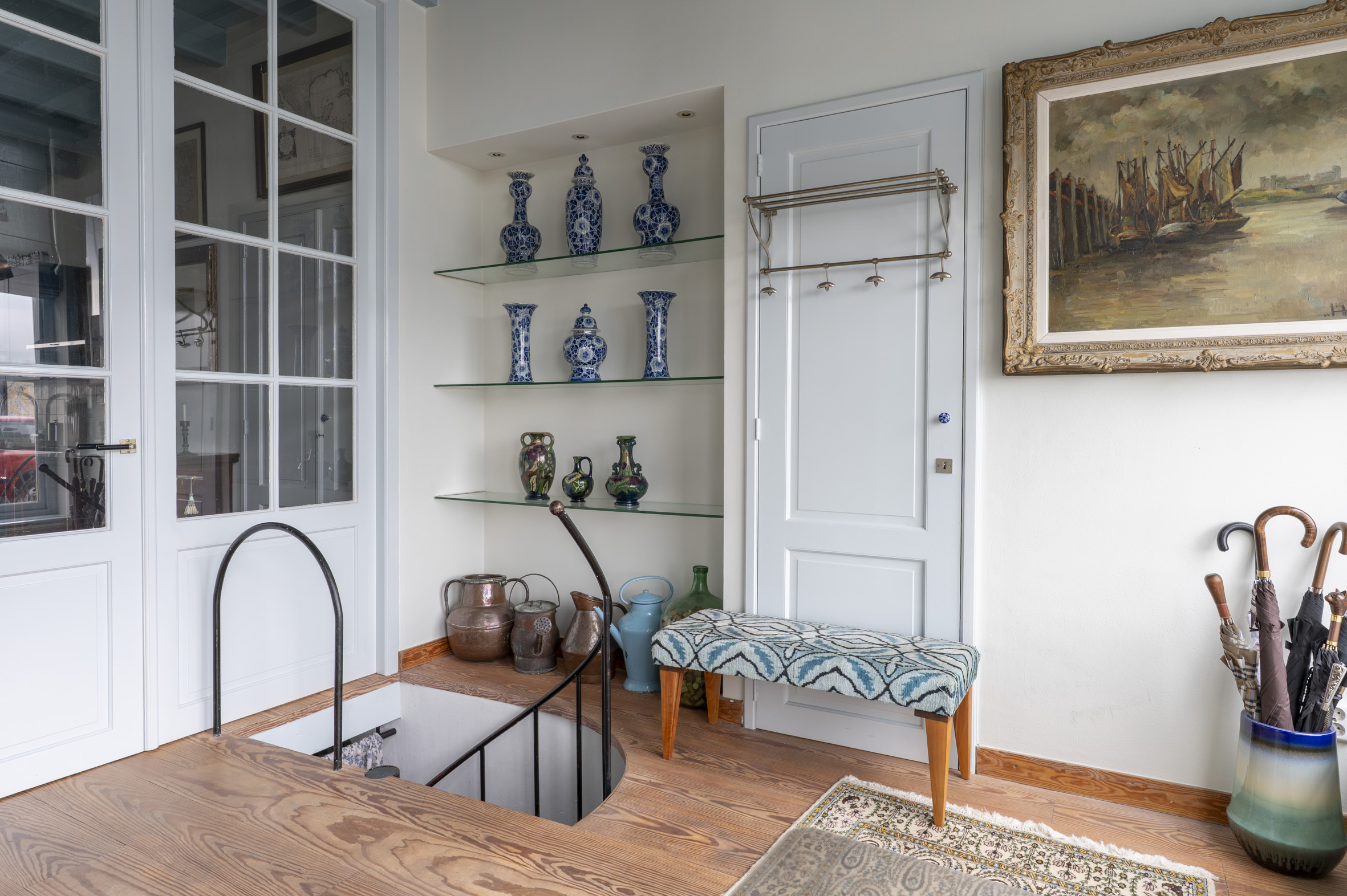 1e verdieping: geweldige woonkamer! Door de lengte en de vorm heb je hier veel mogelijkheden tot gebruik. Een fijne ruimte aan de voorzijde met open haard en zicht op de IJssel. Aan de achterzijde een gezellige zithoek. Met een deur naar een klein balkon. Open trap naar de volgende verdieping.
