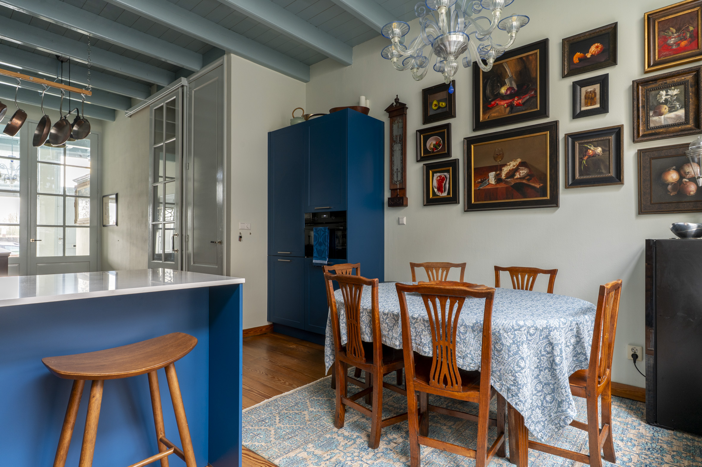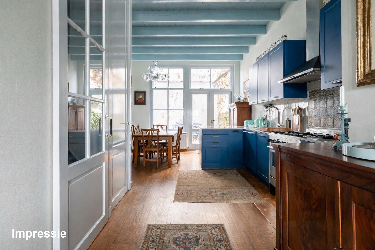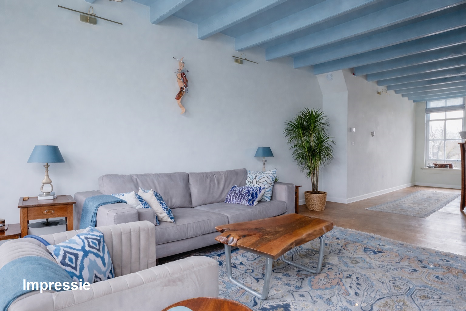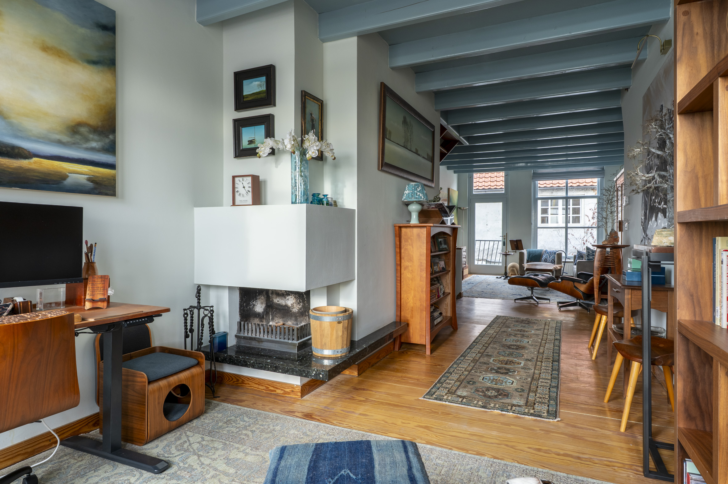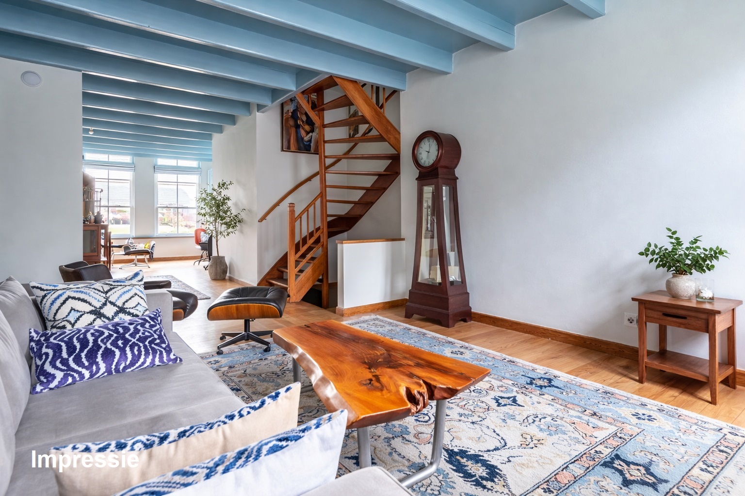 *de grote hoogten in het huis, de fraaie balken en mooie grenen vloeren bepalen de karakteristieke sfeer. De wanden zijn mooi strak afgewerkt en al het schilderwerk aan de binnenzijde is uitgevoerd in 2025. Hierbij zijn warme kleuren gebruikt.