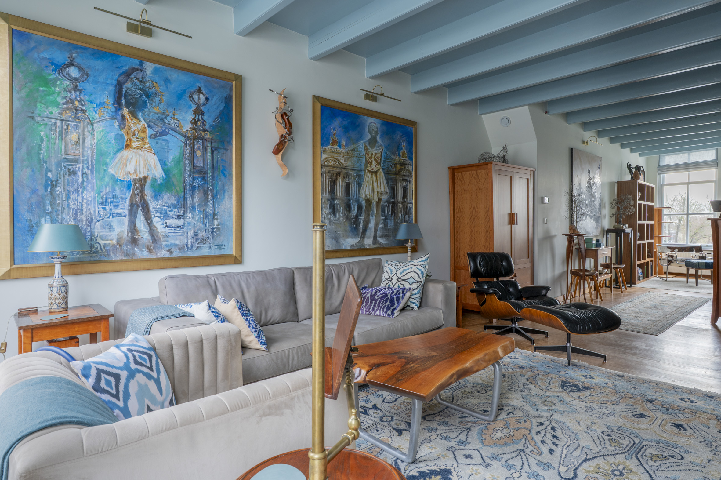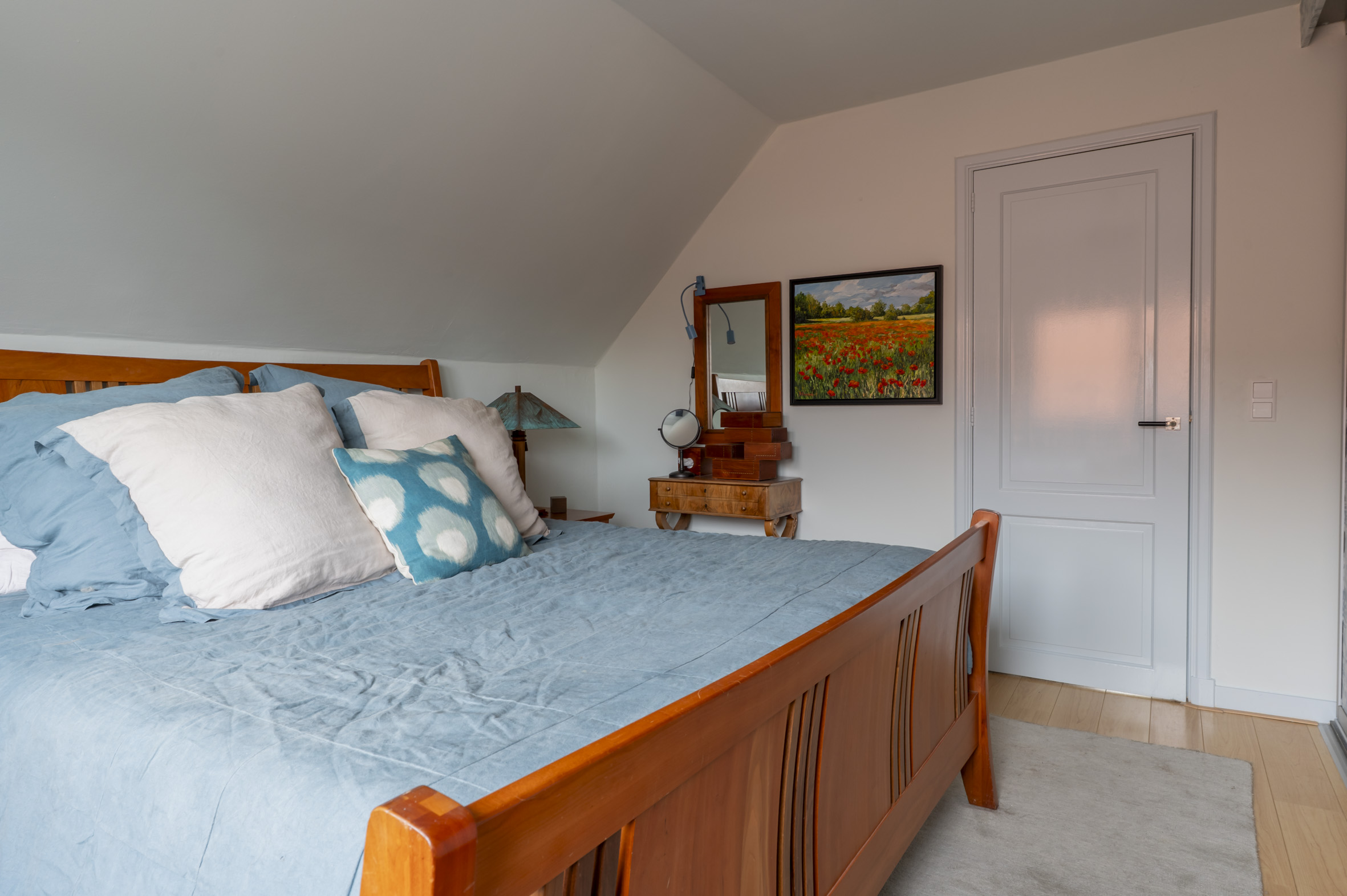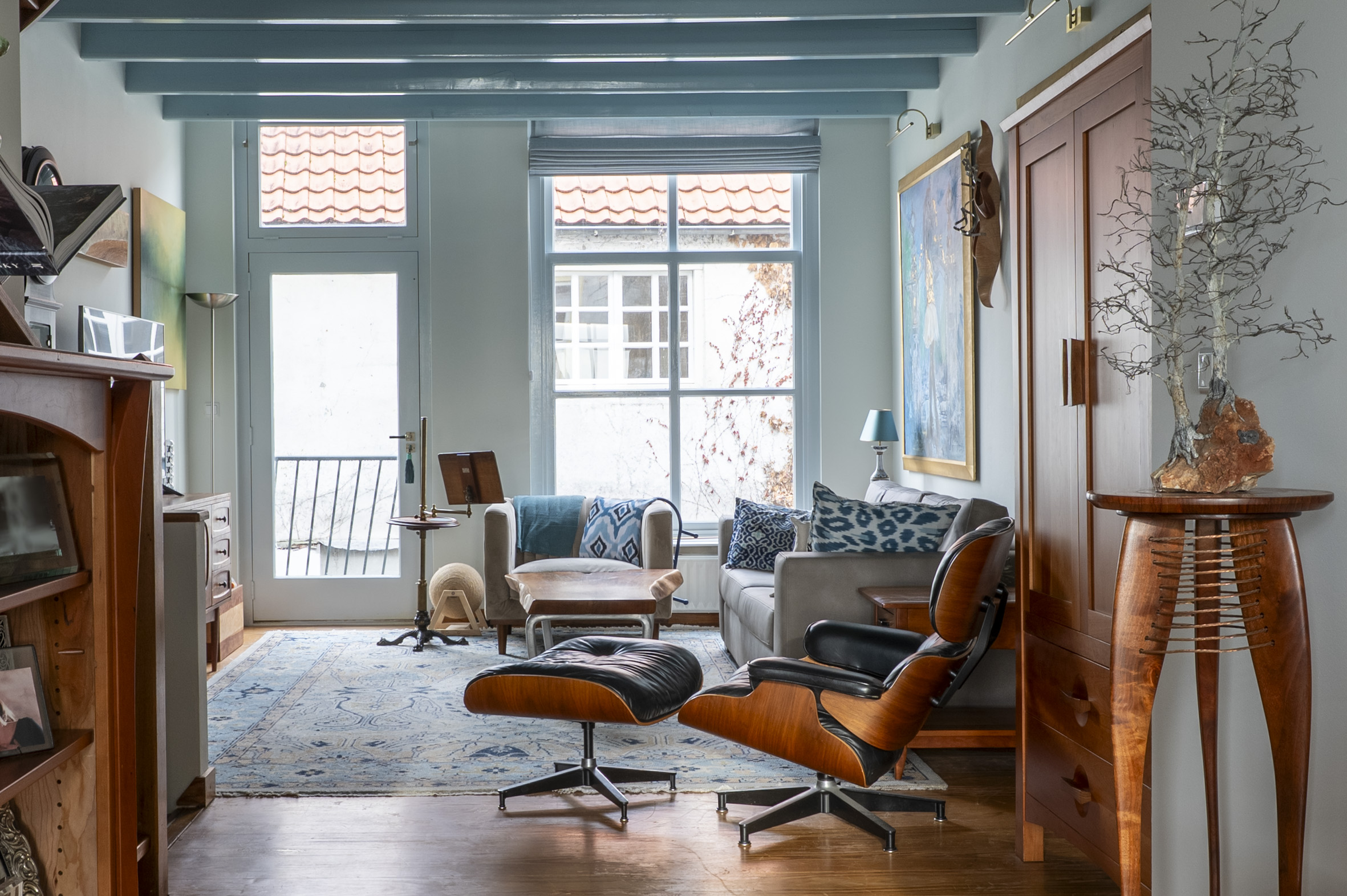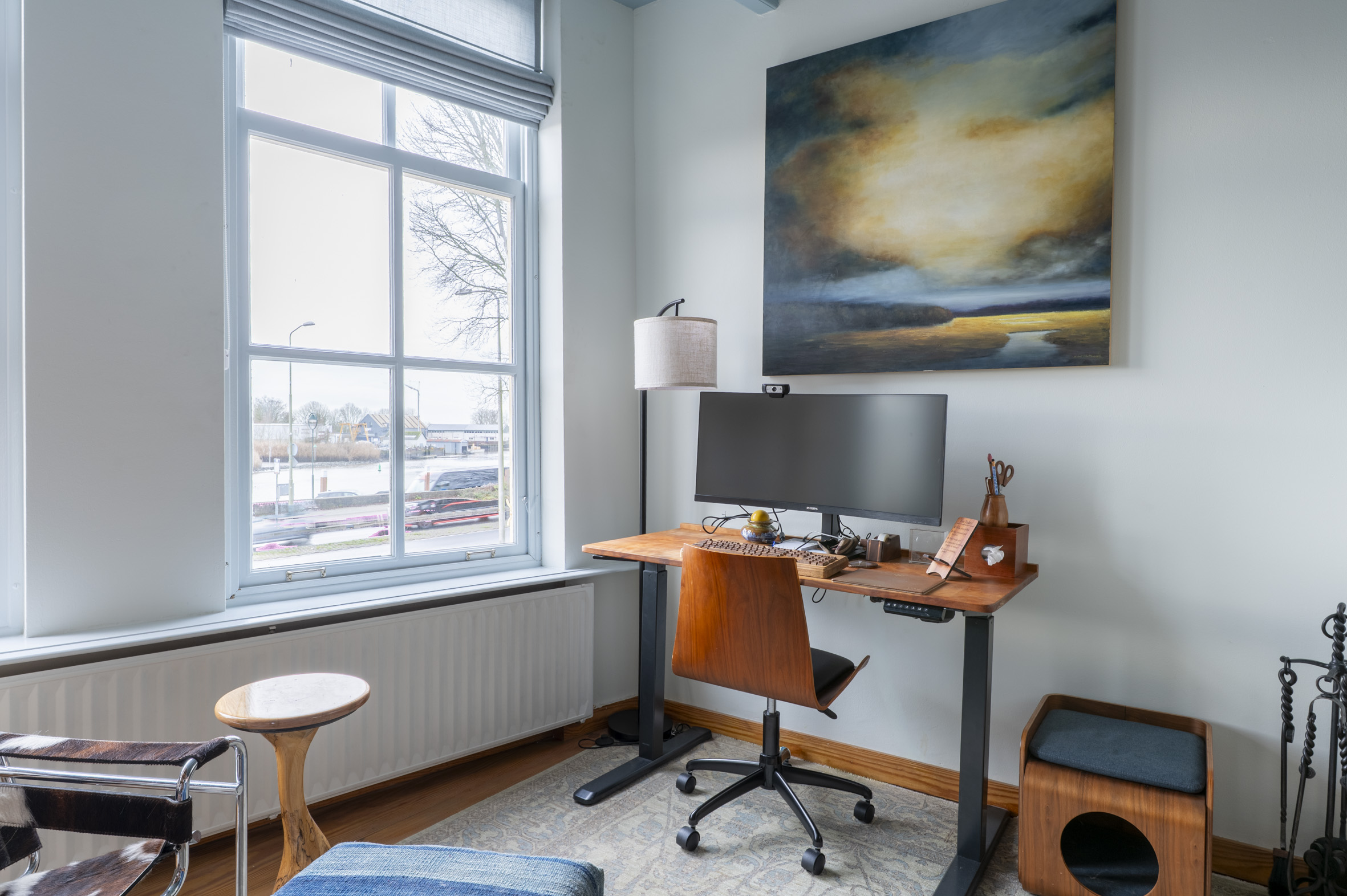 *de grote hoogten in het huis, de fraaie balken en mooie grenen vloeren bepalen de karakteristieke sfeer. De wanden zijn mooi strak afgewerkt en al het schilderwerk aan de binnenzijde is uitgevoerd in 2025. Hierbij zijn warme kleuren gebruikt.