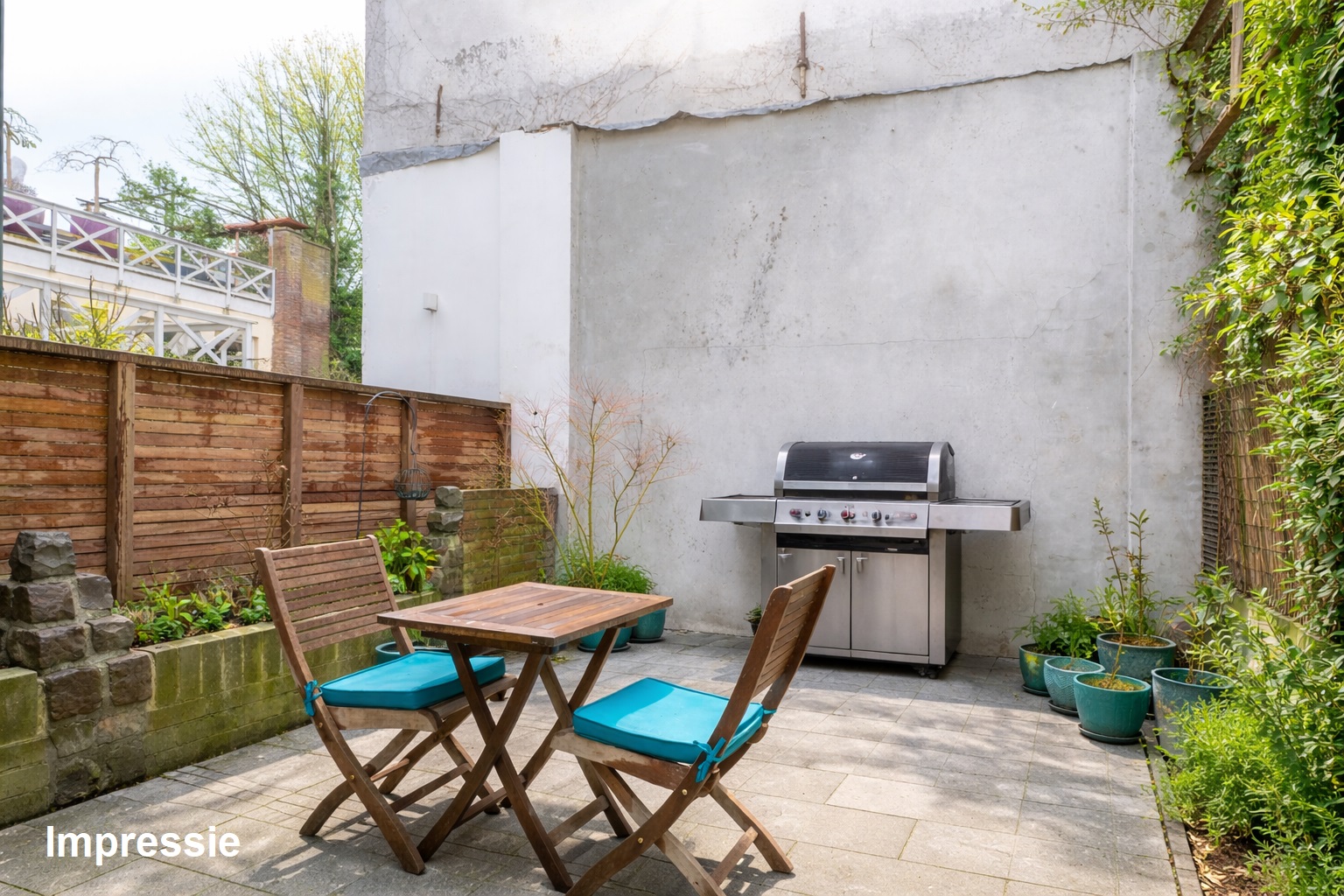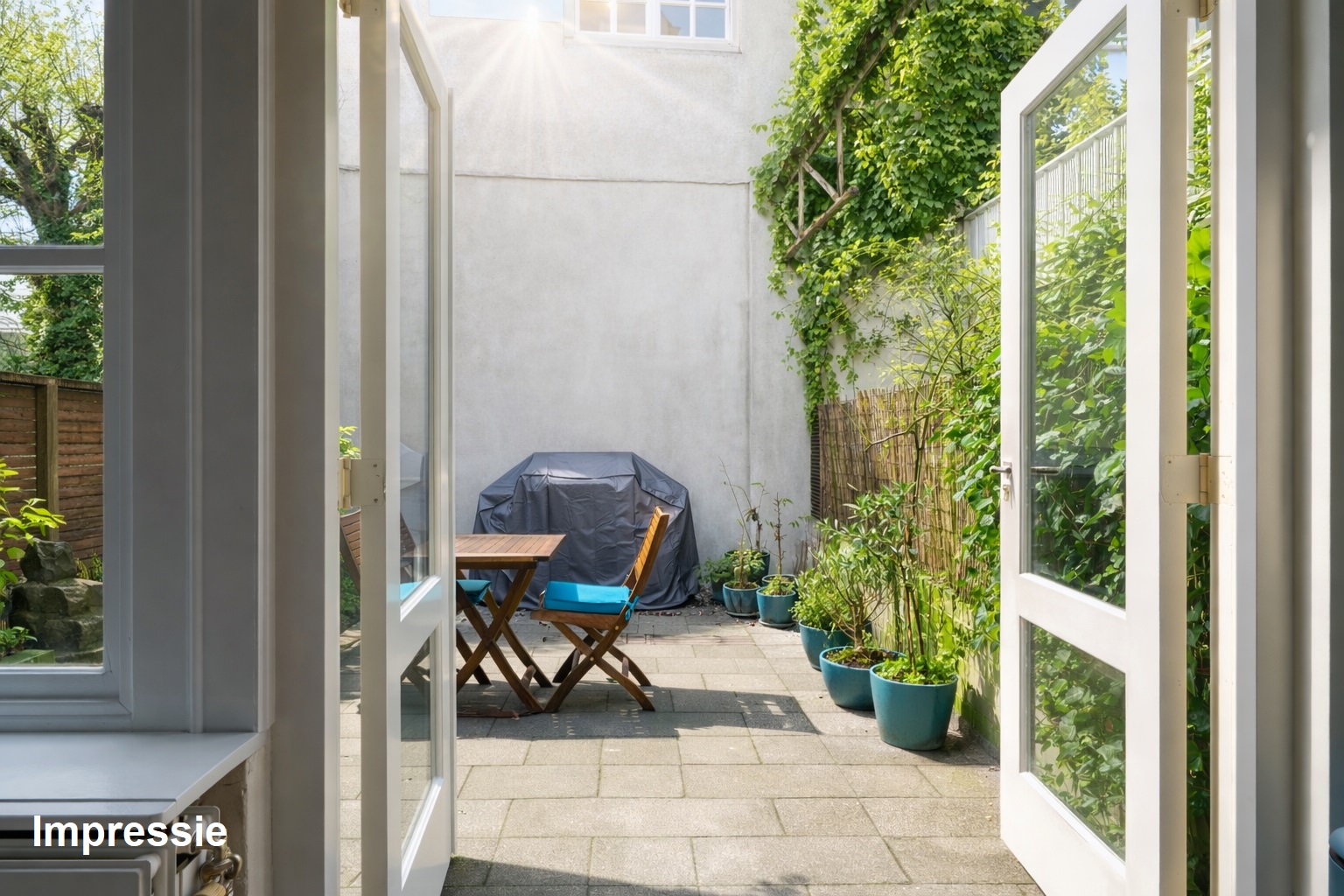 *De binnenstadstuin is bestraat en voorzien van een vaste plantenbak.