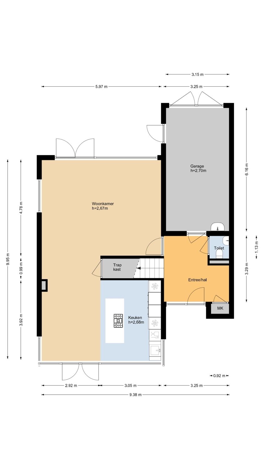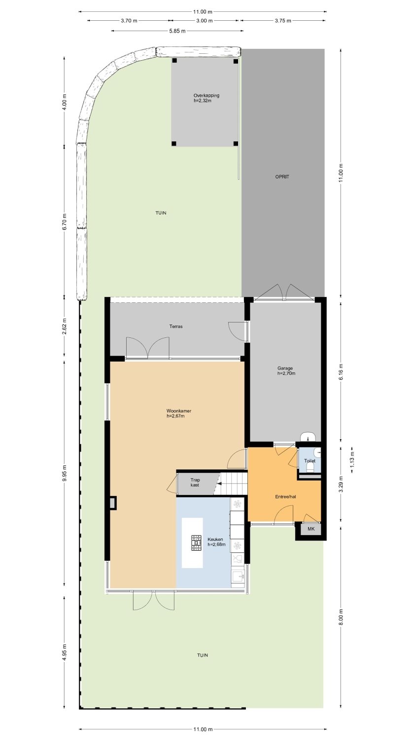 Vanuit de hal is ook de grote garage bereikbaar.