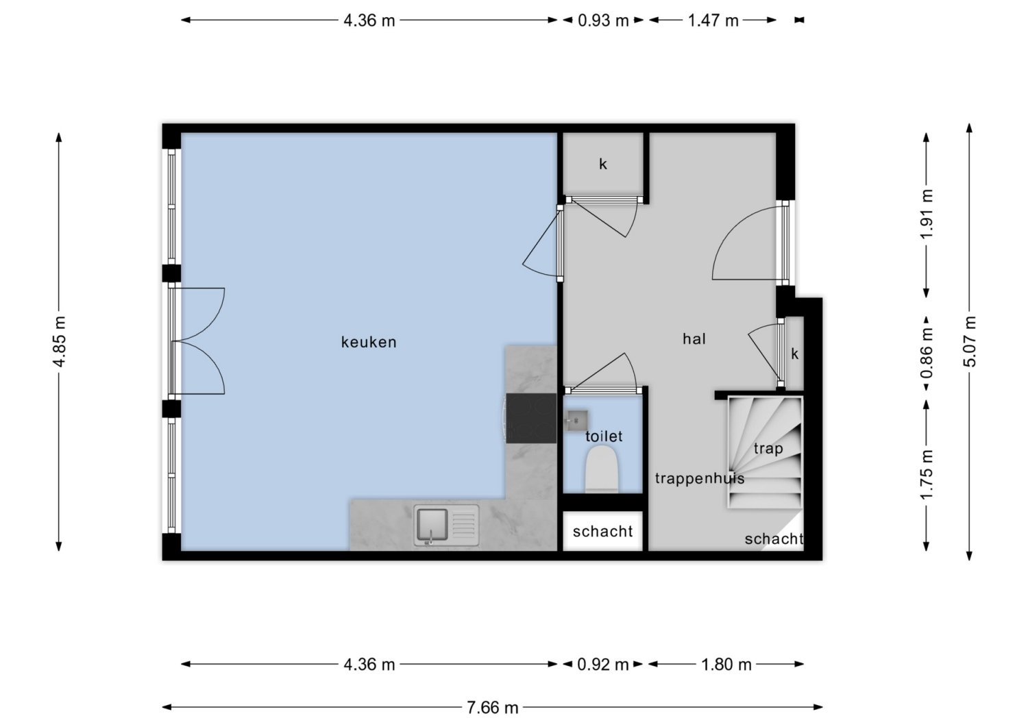 *Op alle vloeren is eiken pvc aangebracht. De wanden zijn glad afgewerkt.