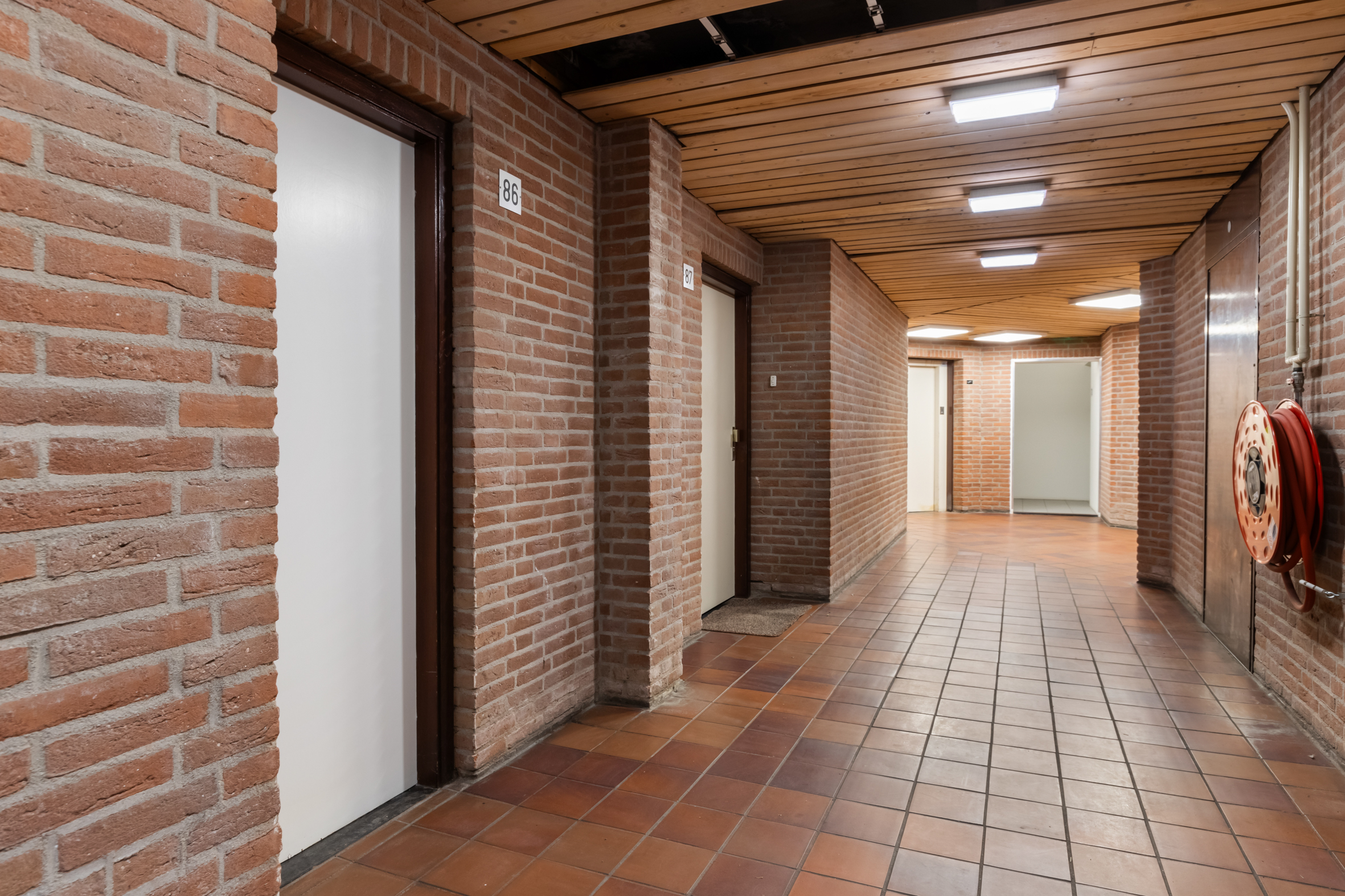 begane grond: centrale hal met afgesloten entree, trappenhuis en lift.