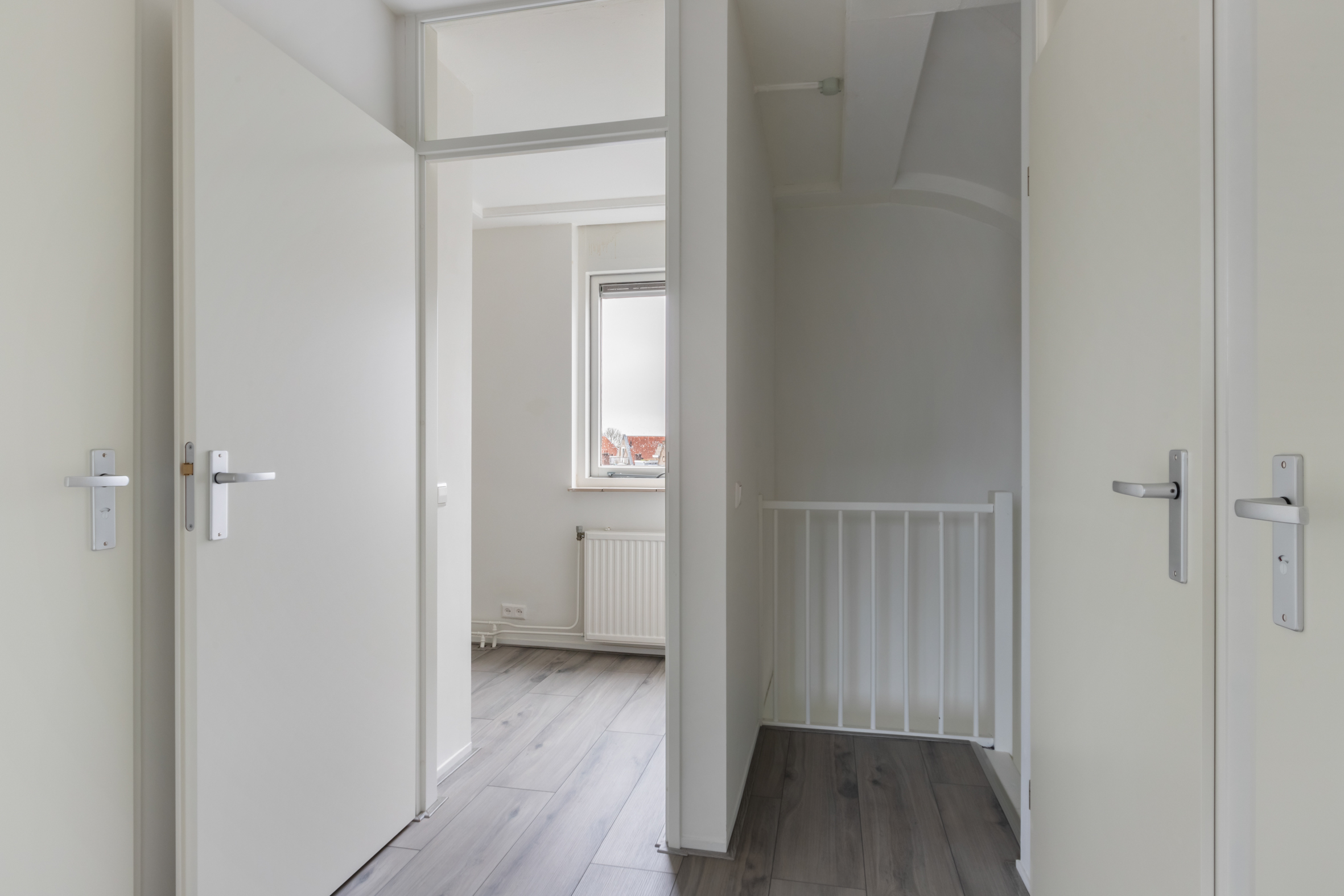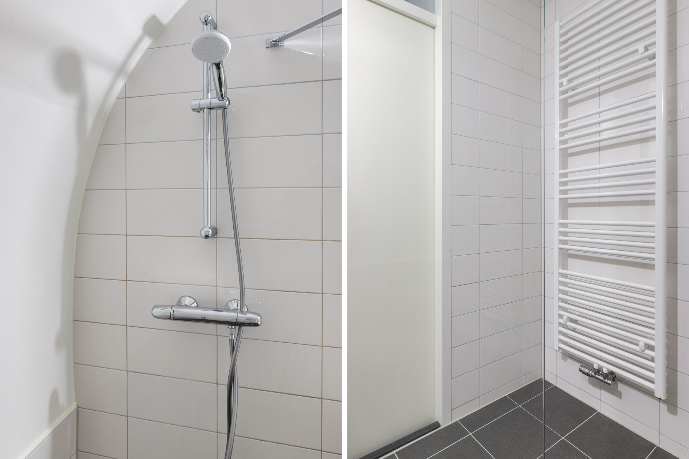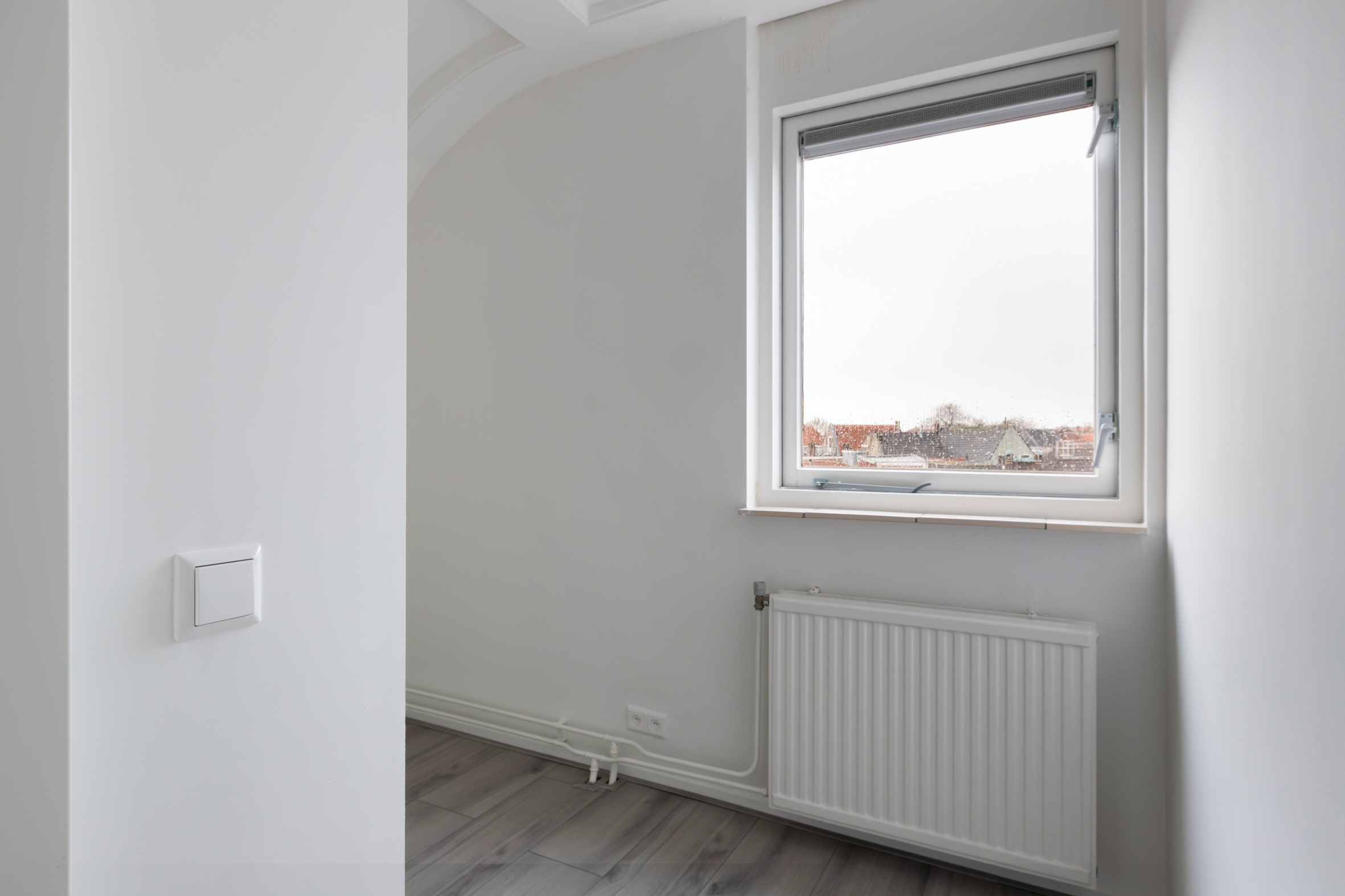 3e verdieping: overloop met toilet en cv-ruimte, een ruime slaapkamer aan de voorzijde en 2e slaap-/studeerkamer aan de achterzijde. Beide slaapkamers hebben de bijzondere, ronde kap in het zicht. Moderne, inpandige badkamer voorzien van inloopdouche, wastafel en designradiator.