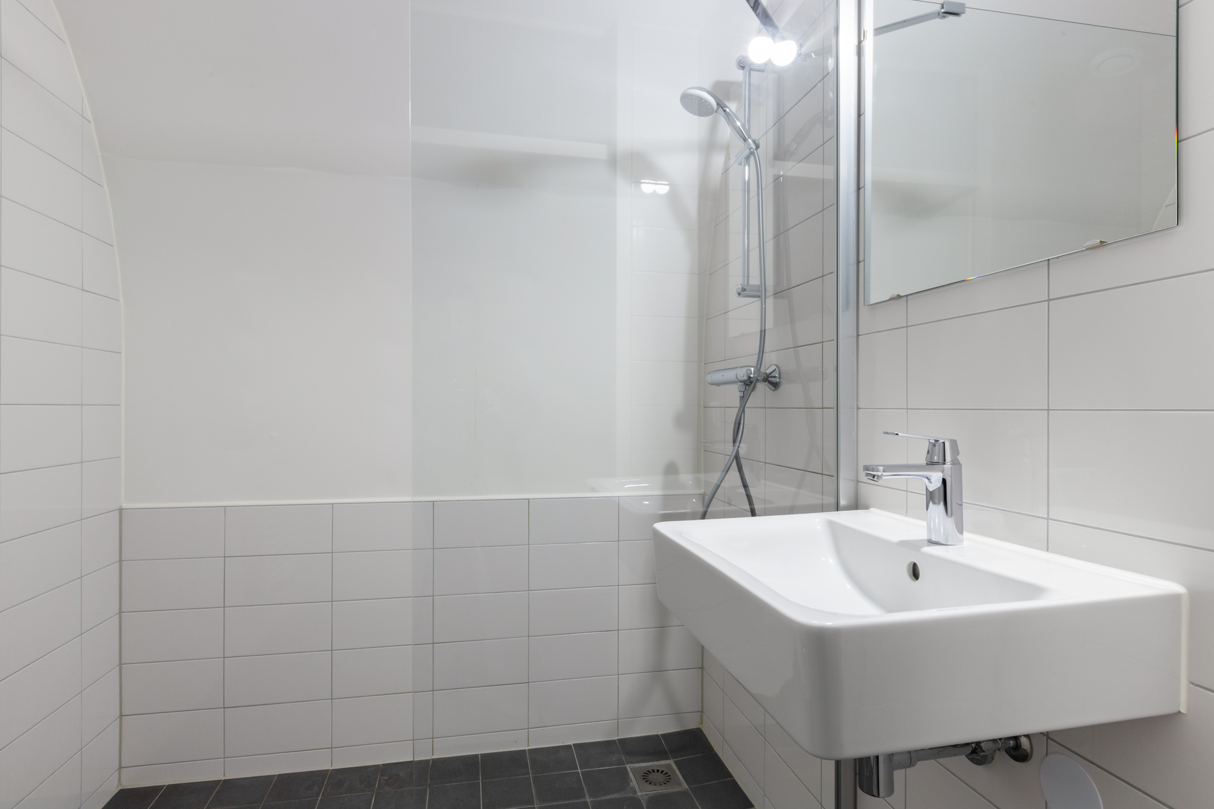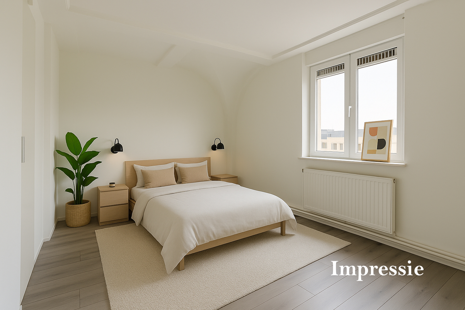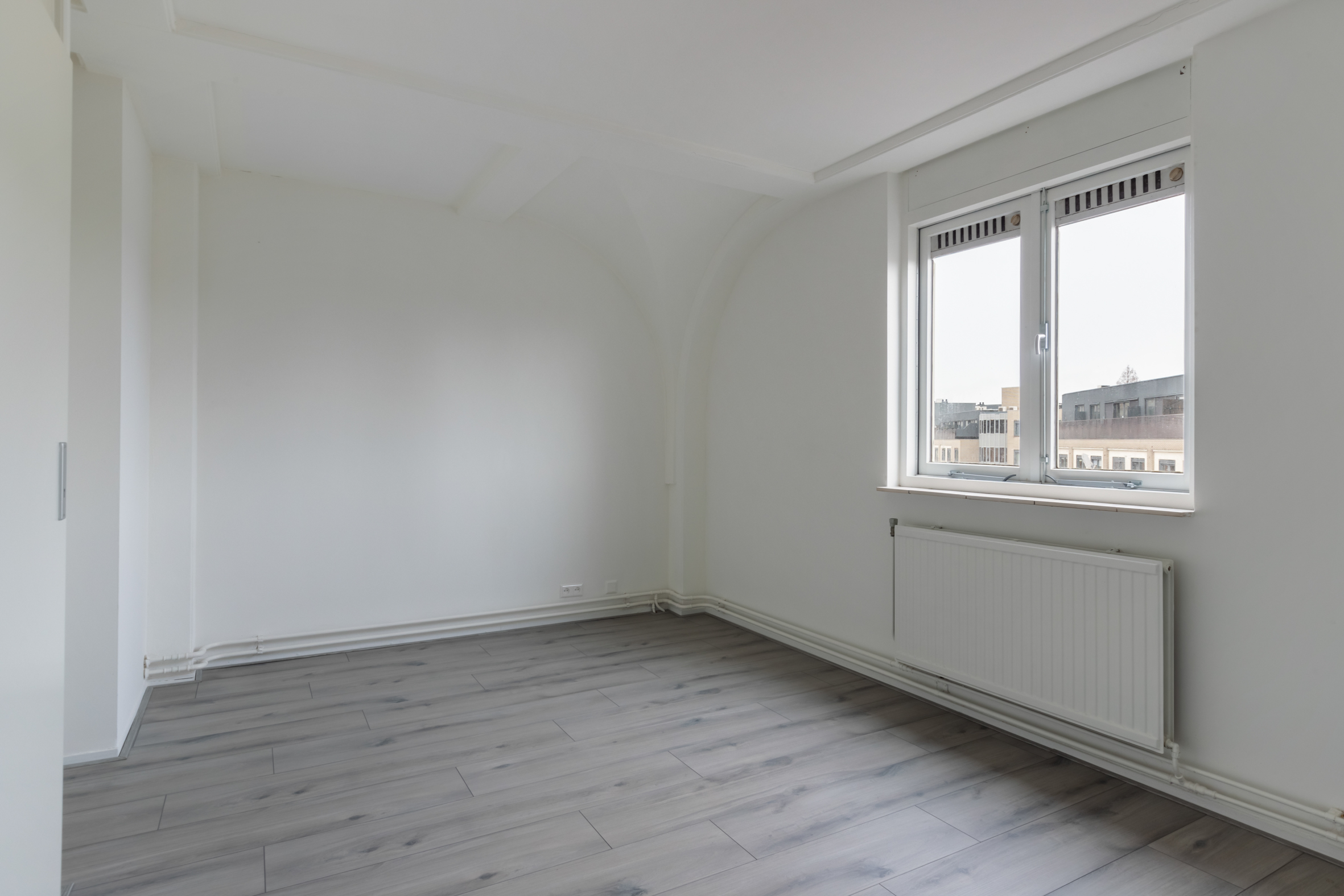 3e verdieping: overloop met toilet en cv-ruimte, een ruime slaapkamer aan de voorzijde en 2e slaap-/studeerkamer aan de achterzijde. Beide slaapkamers hebben de bijzondere, ronde kap in het zicht. Moderne, inpandige badkamer voorzien van inloopdouche, wastafel en designradiator.