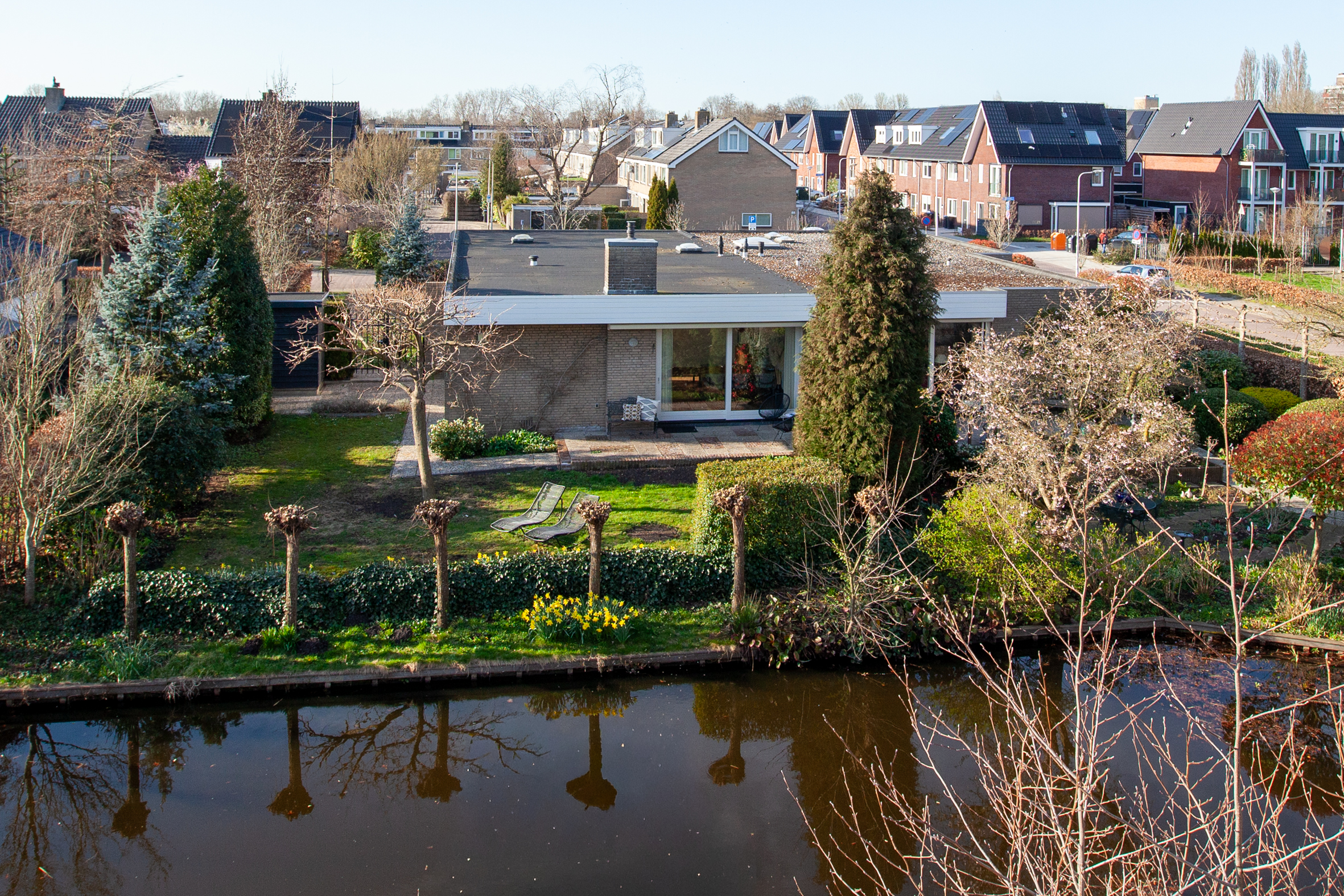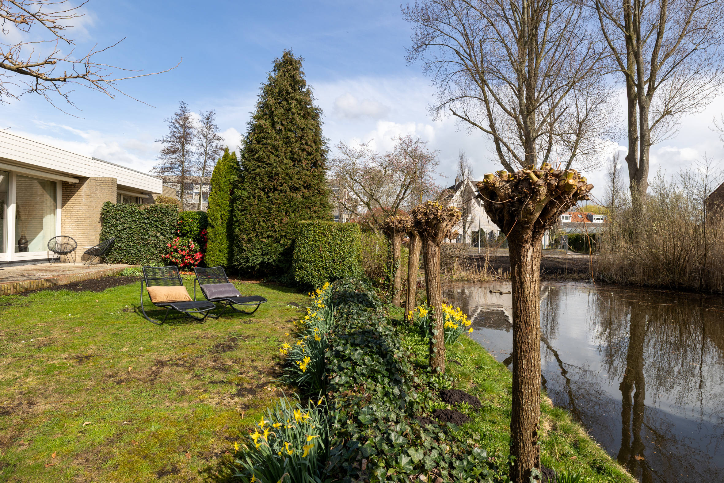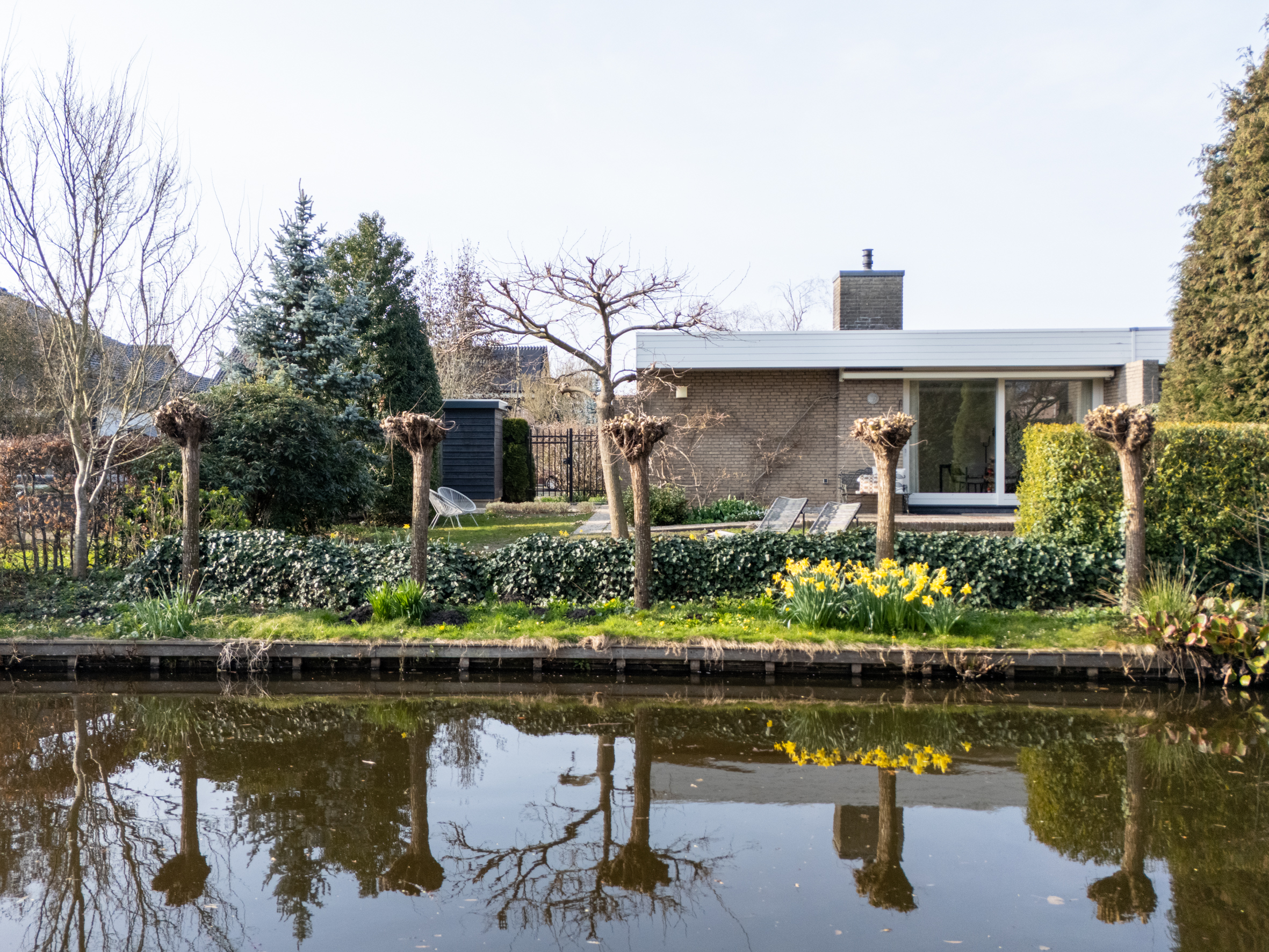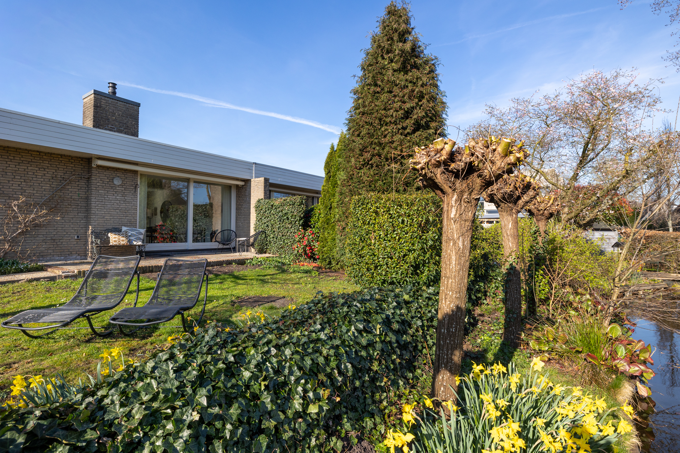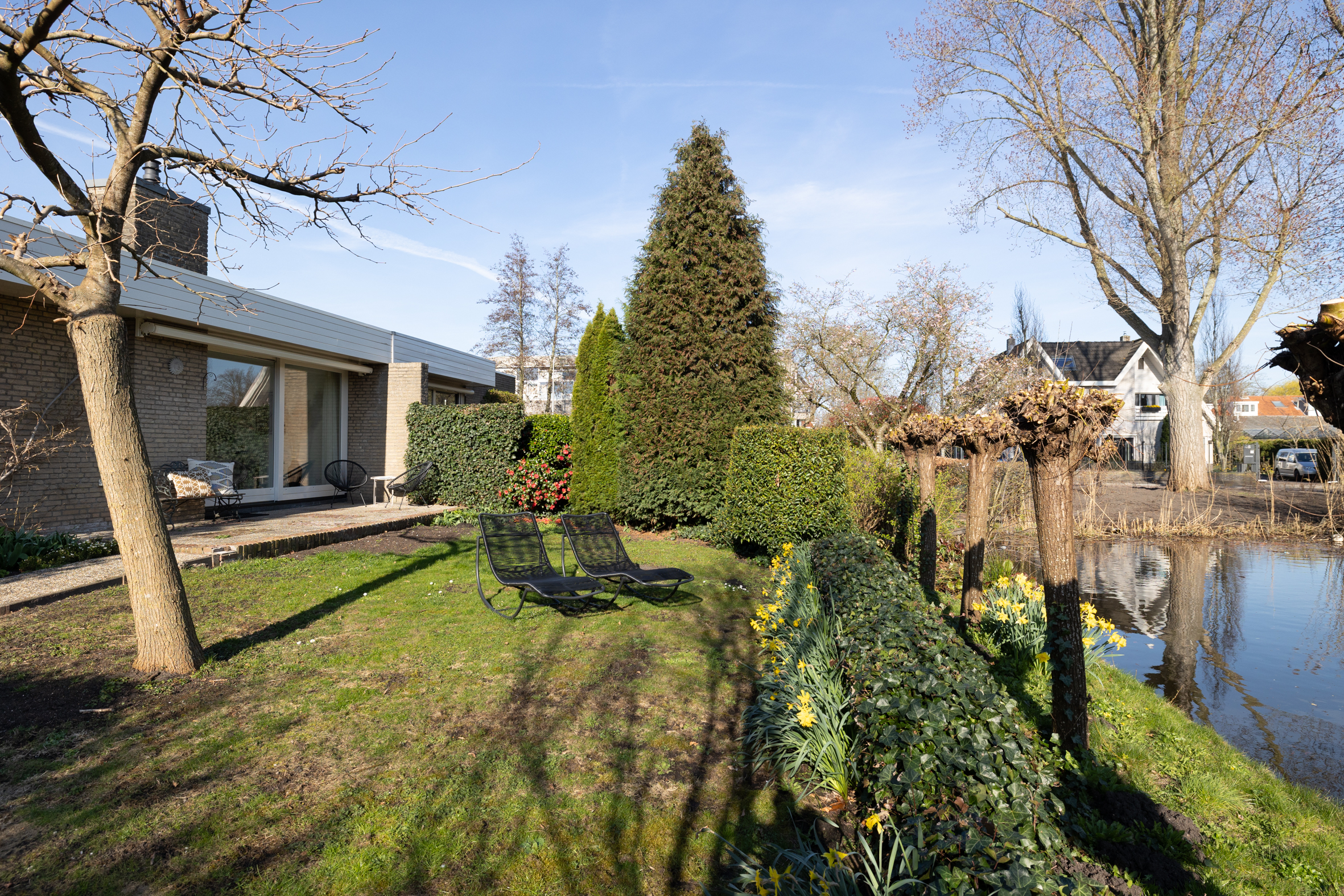 *Geweldige tuin rondom het huis! De ligging is zowel zuid, west als noord. Een heel ruime keuze om te zitten en te genieten. Het water, dat grenst aan de tuin geeft rust en vrijheid/weidsheid.
