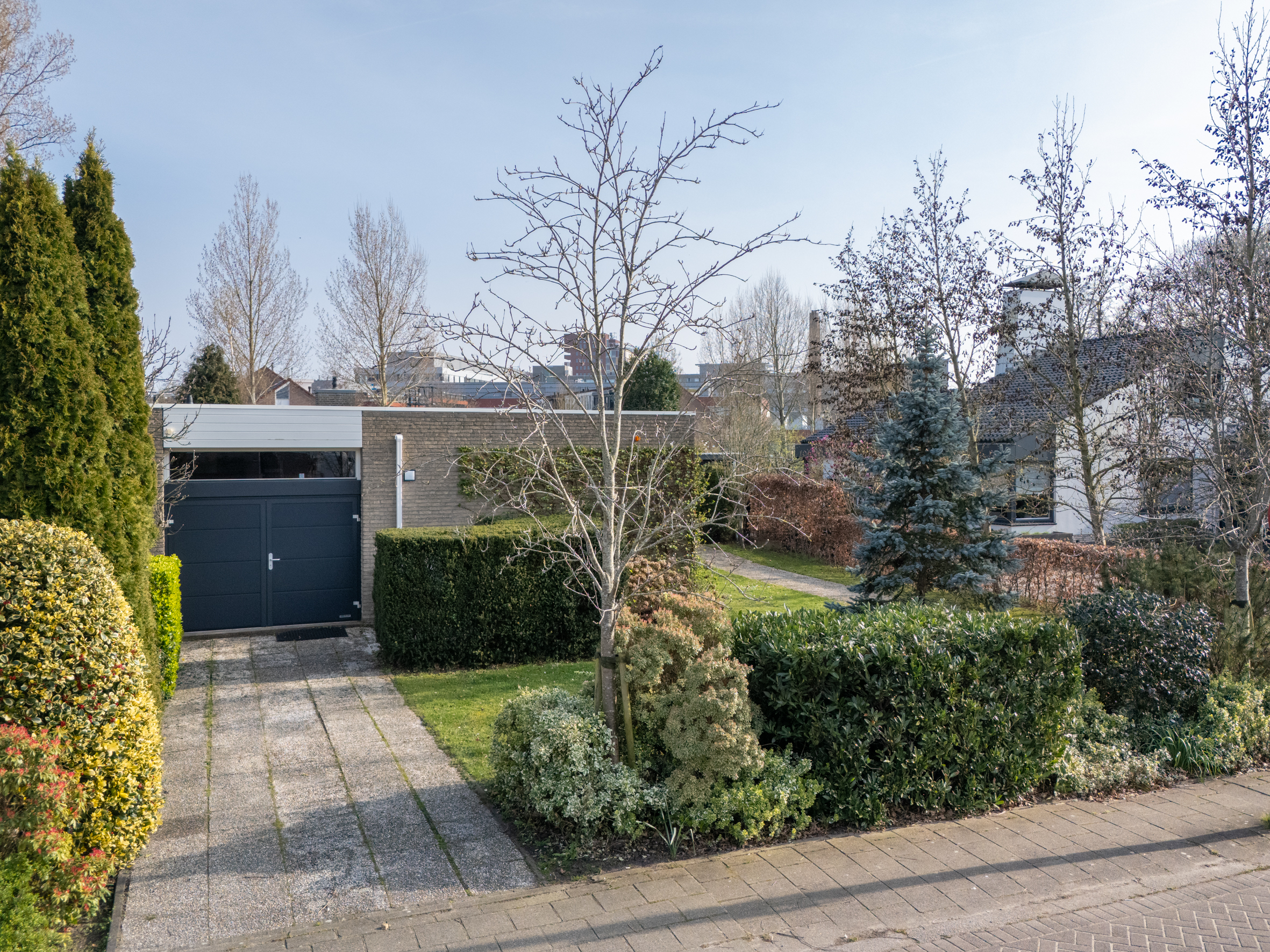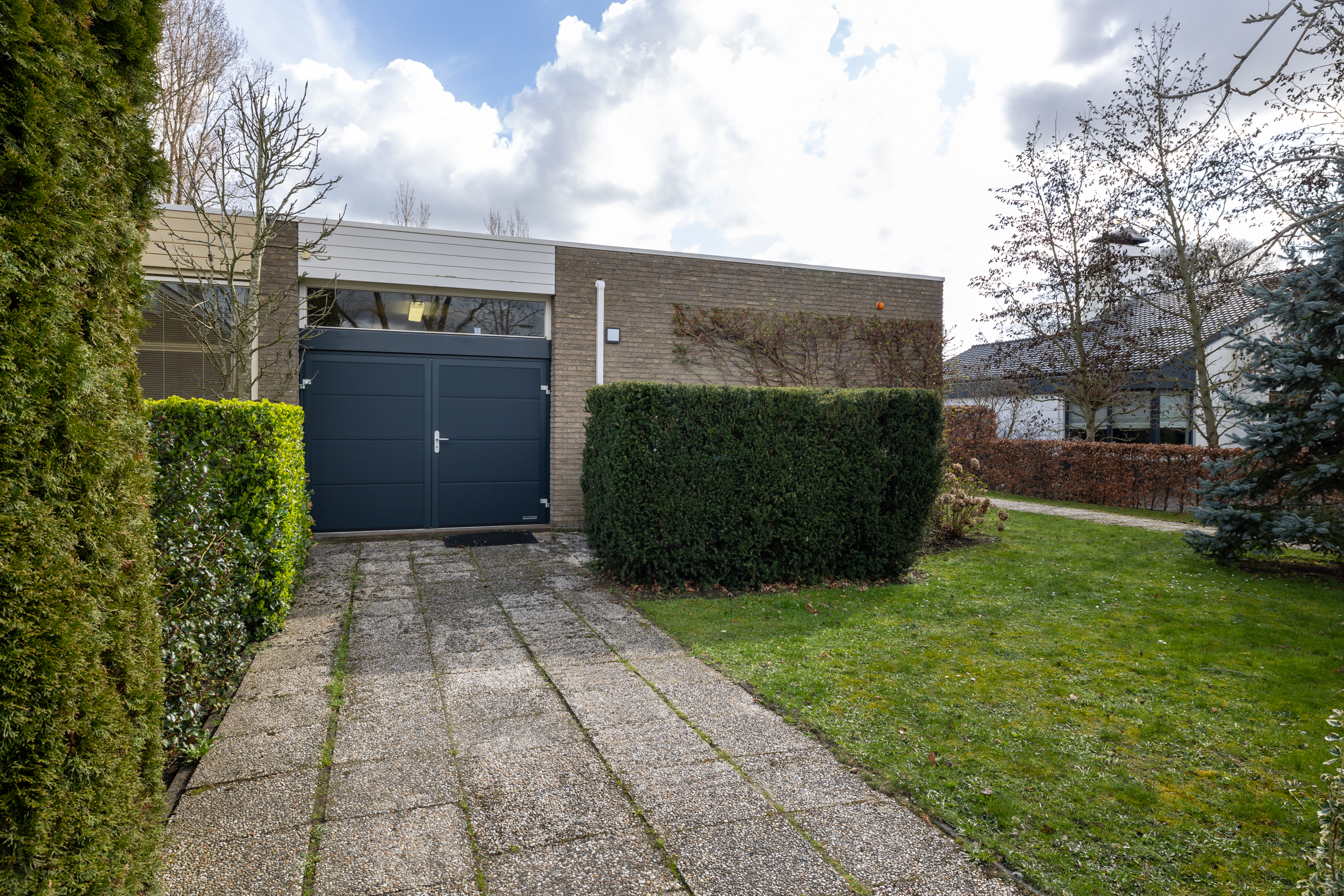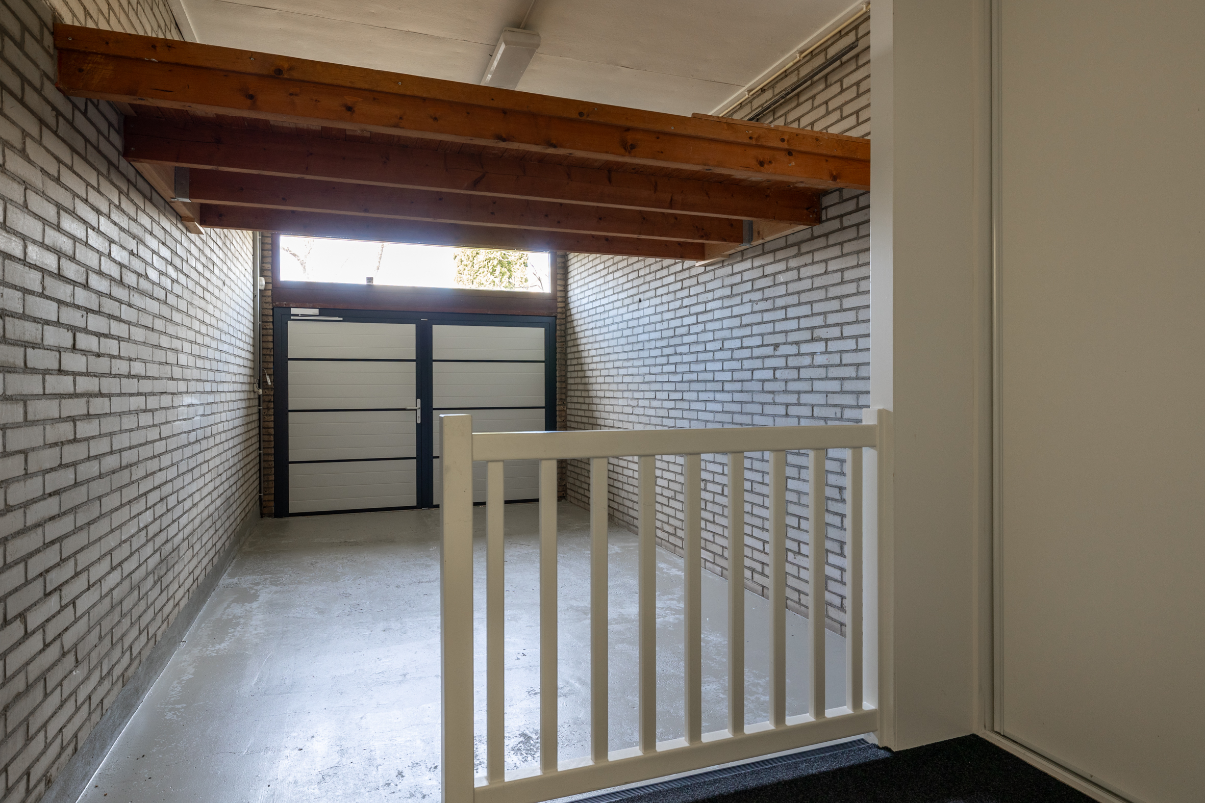 *In de garage zijn een vaste kast en een vliering aangebracht. Aan de voorzijde openslaande deuren. De oprit voor de garage biedt ruimte voor het parkeren van 2 auto's.
