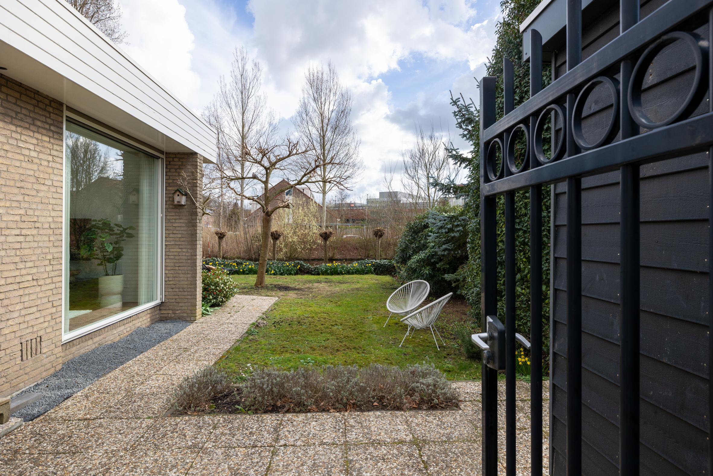 *De tuin is afgescheiden met een hek en een vrijstaande houten schuur. Beide gefundeerd.