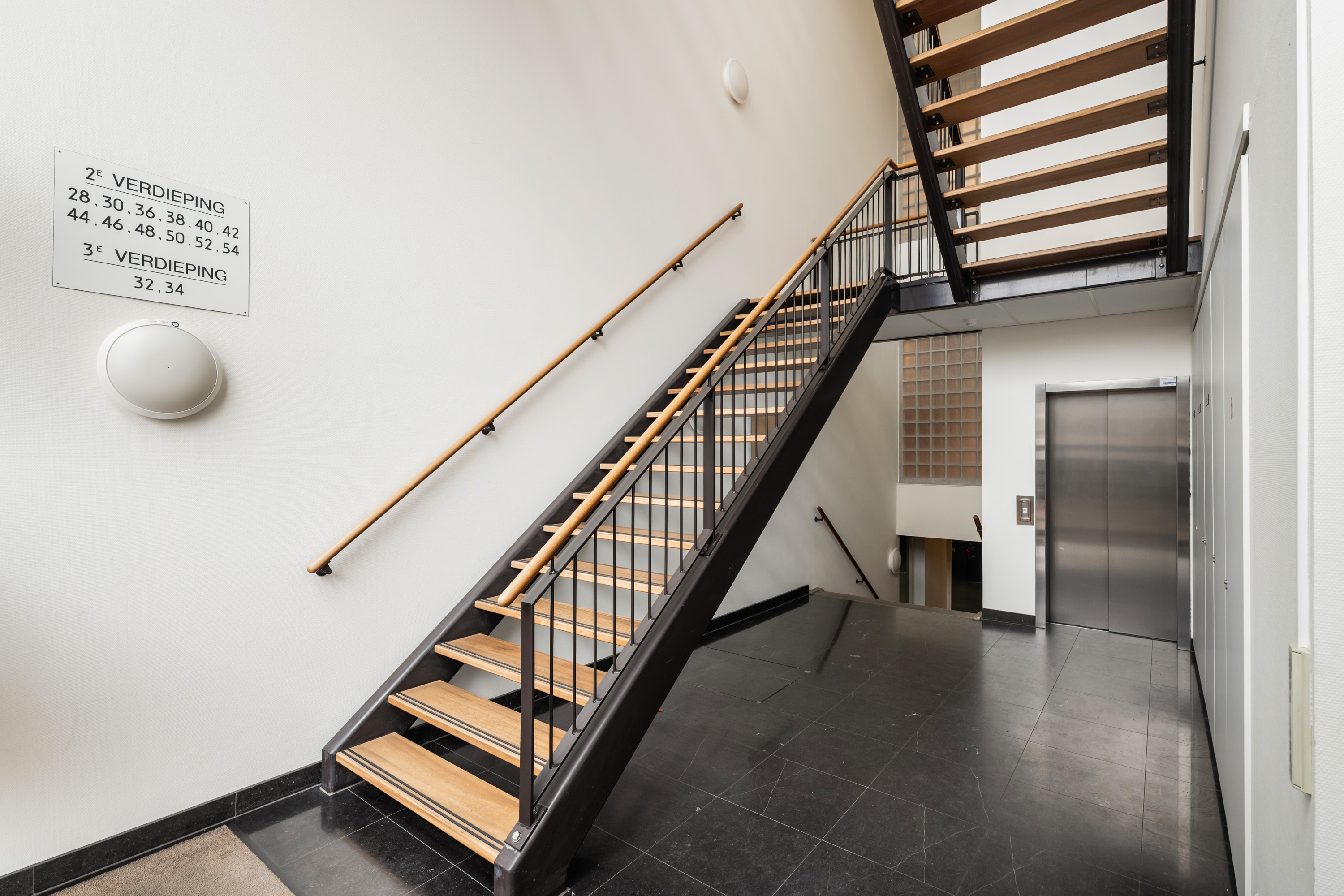begane grond: centrale hal met een riant, afgesloten entree, goed trappenhuis en lift. Tevens toegang tot de parkeergarage.