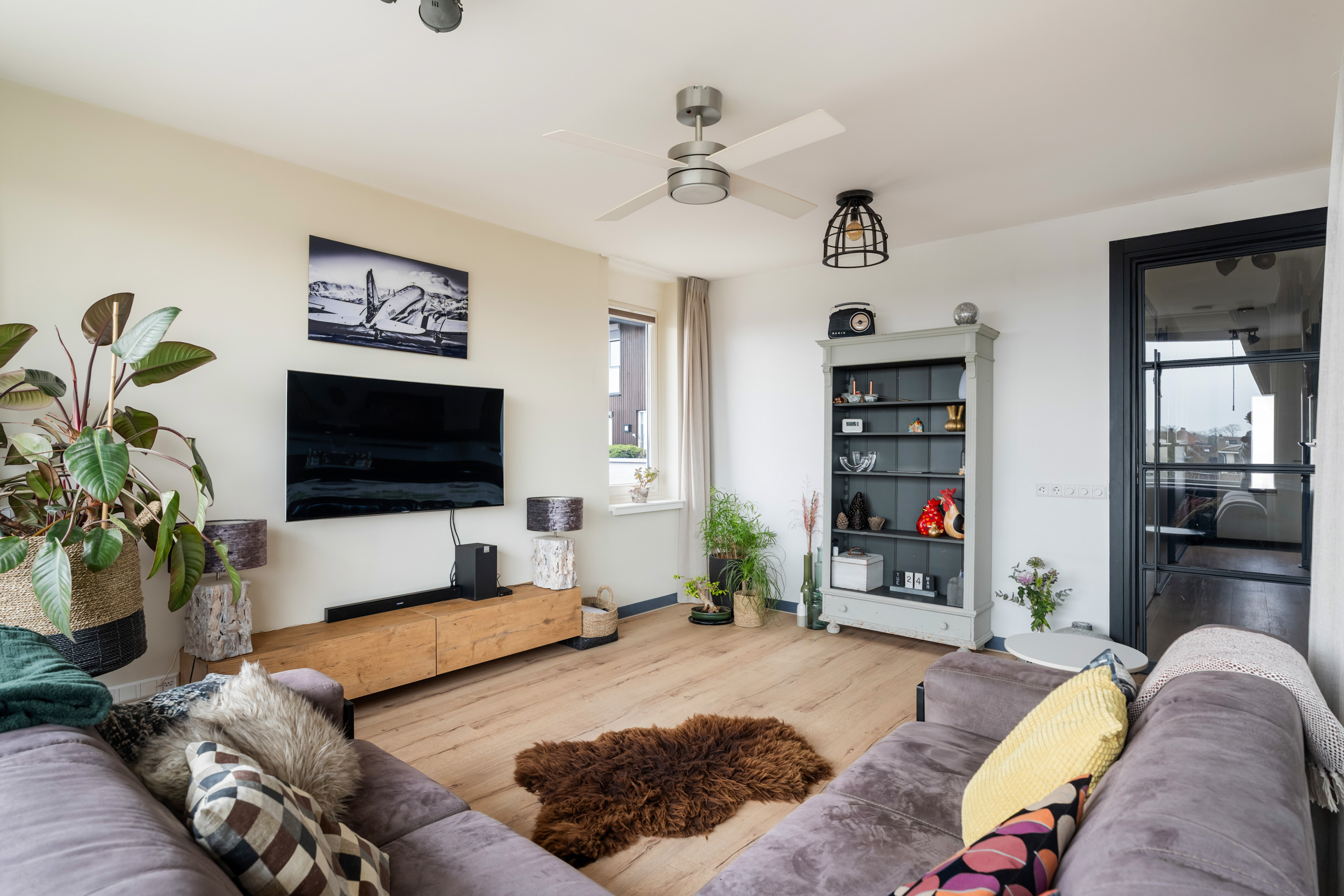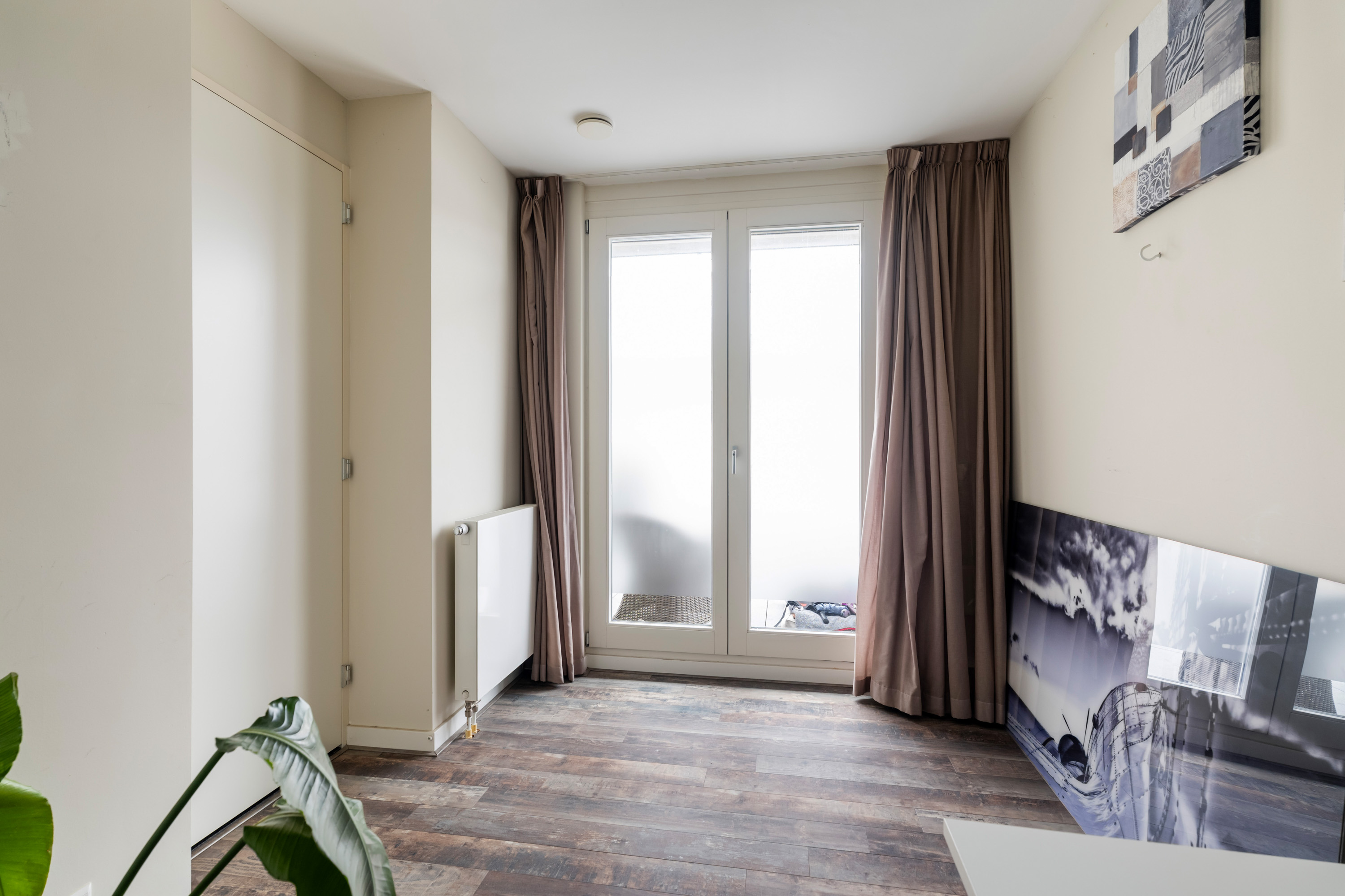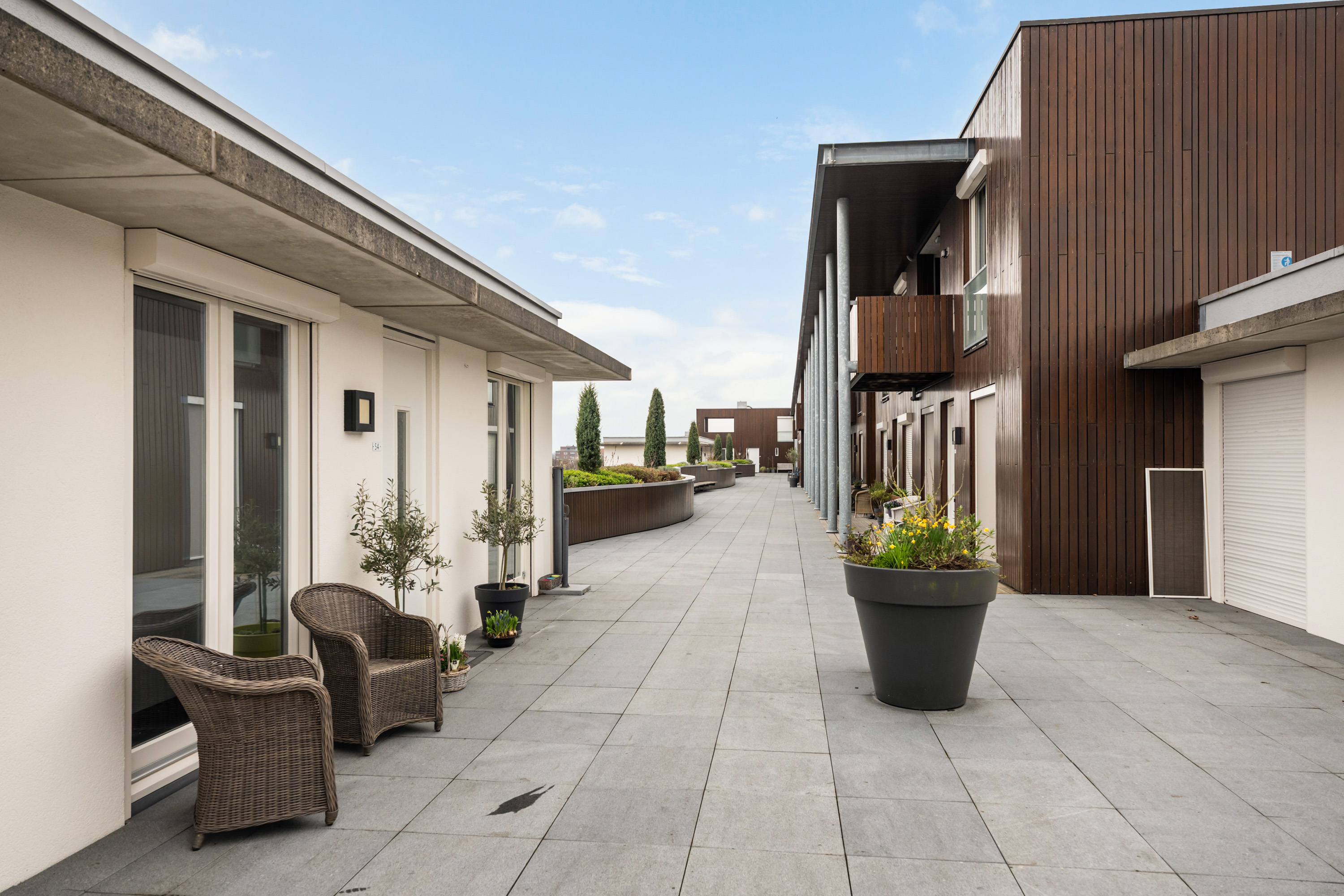 2e verdieping: gemeenschappelijke binnentuin, die toegang biedt tot alle privé woningen. Entree, hal met meterkast, garderobe en luxe, hangend toilet en fontein. Heerlijk ruime, lichte woonkamer met aan twee zijden grote ramen en een schuifpui naar de loggia annex eetkamer. Deze loggia is in elk seizoen een feest om te gebruiken! Door de aangebrachte glazen schuifpanelen kun je hier het gehele jaar door heel aangenaam verblijven. Echt een uitbreiding van je woonruimte!