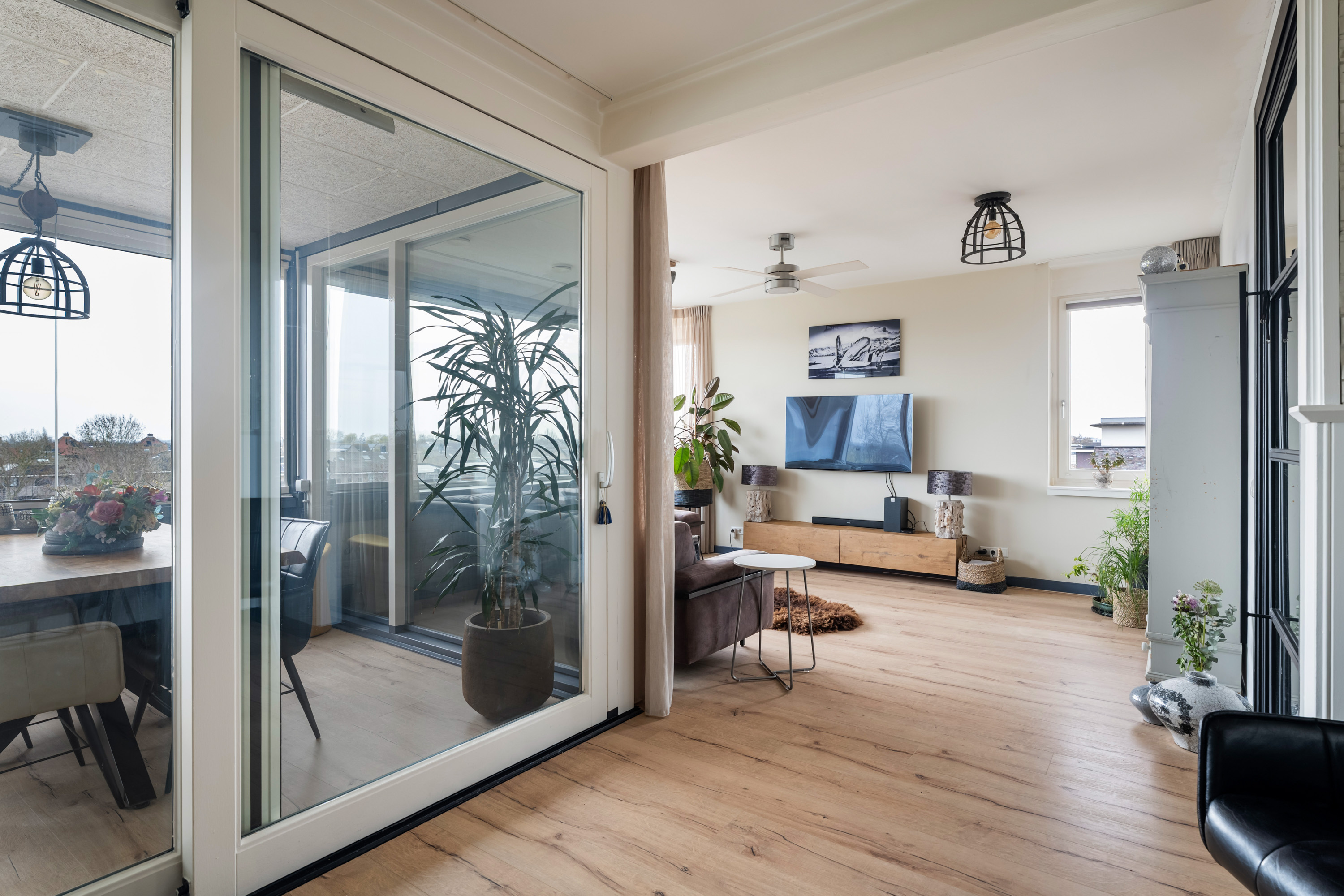 *De oorspronkelijk open loggia/terras is voorzien van heel goed sluitende glazen schuifpanelen. Deze kunnen ook geheel open worden gezet. In de ochtendzon is het hier heerlijk genieten!