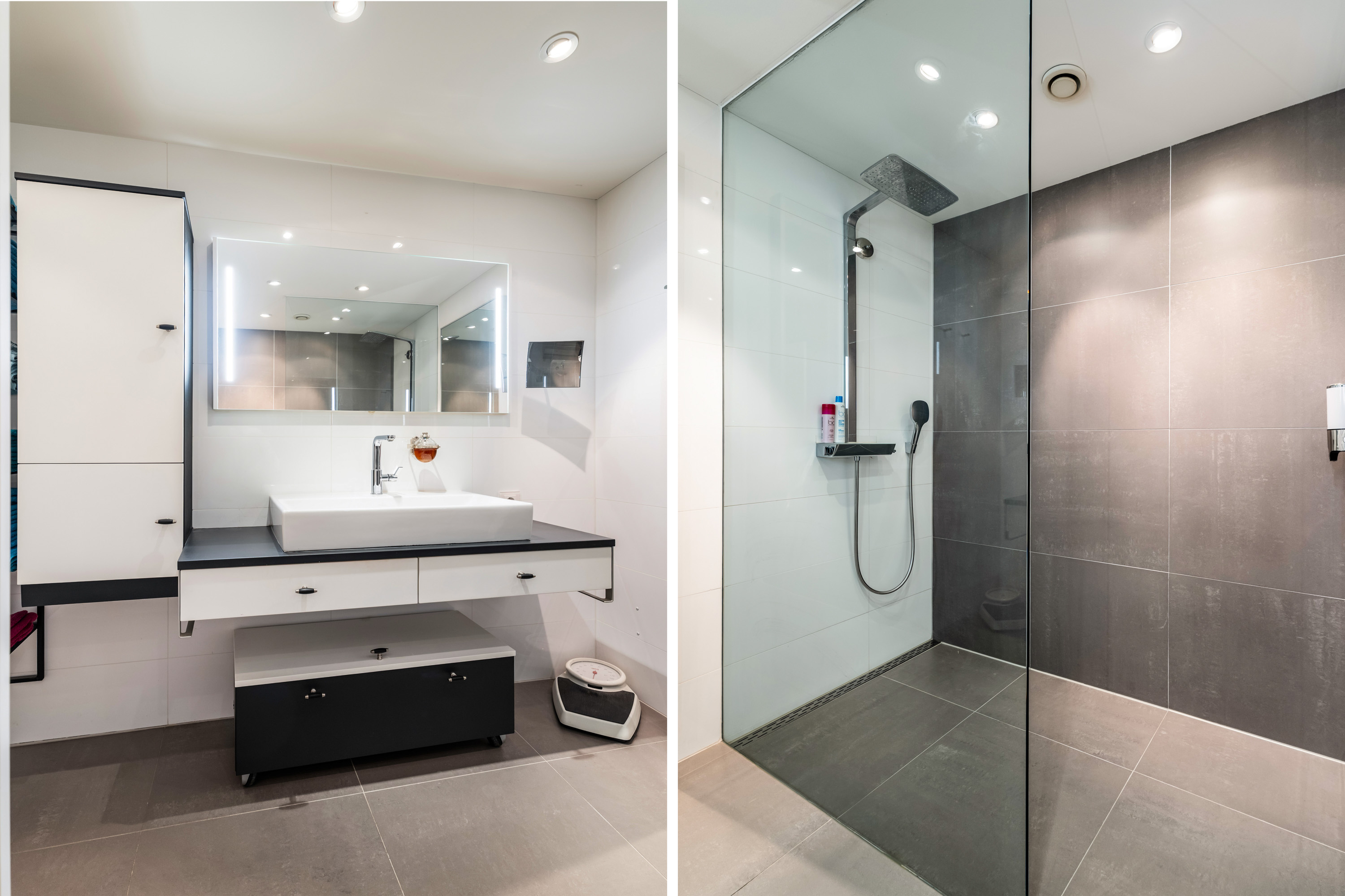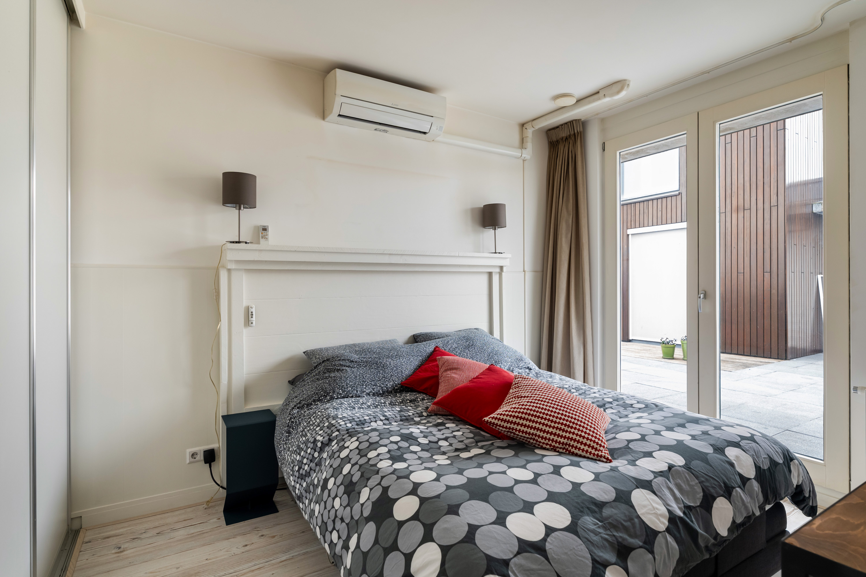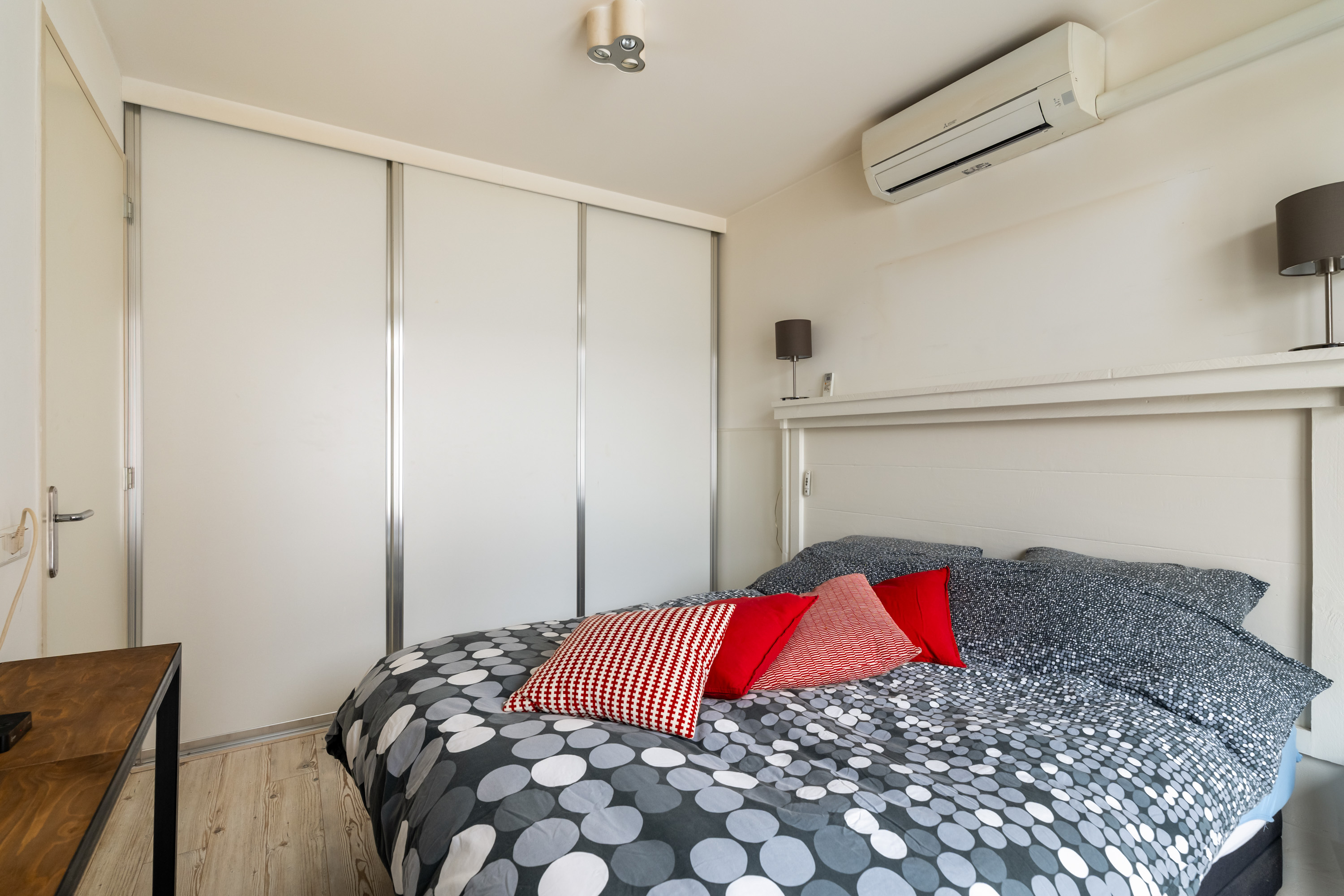 Aan de voorzijde bevinden zich 2 slaapkamers met openslaande deuren (draai-/kiepsysteem). Eén van de slaapkamers is ook nog voorzien van airconditioning en een schuifkastenwand. Luxe inpandige badkamer met inloopdouche met glazen scherm, brede wastafel met meubel, inbouwspots en mooi grote tegels.