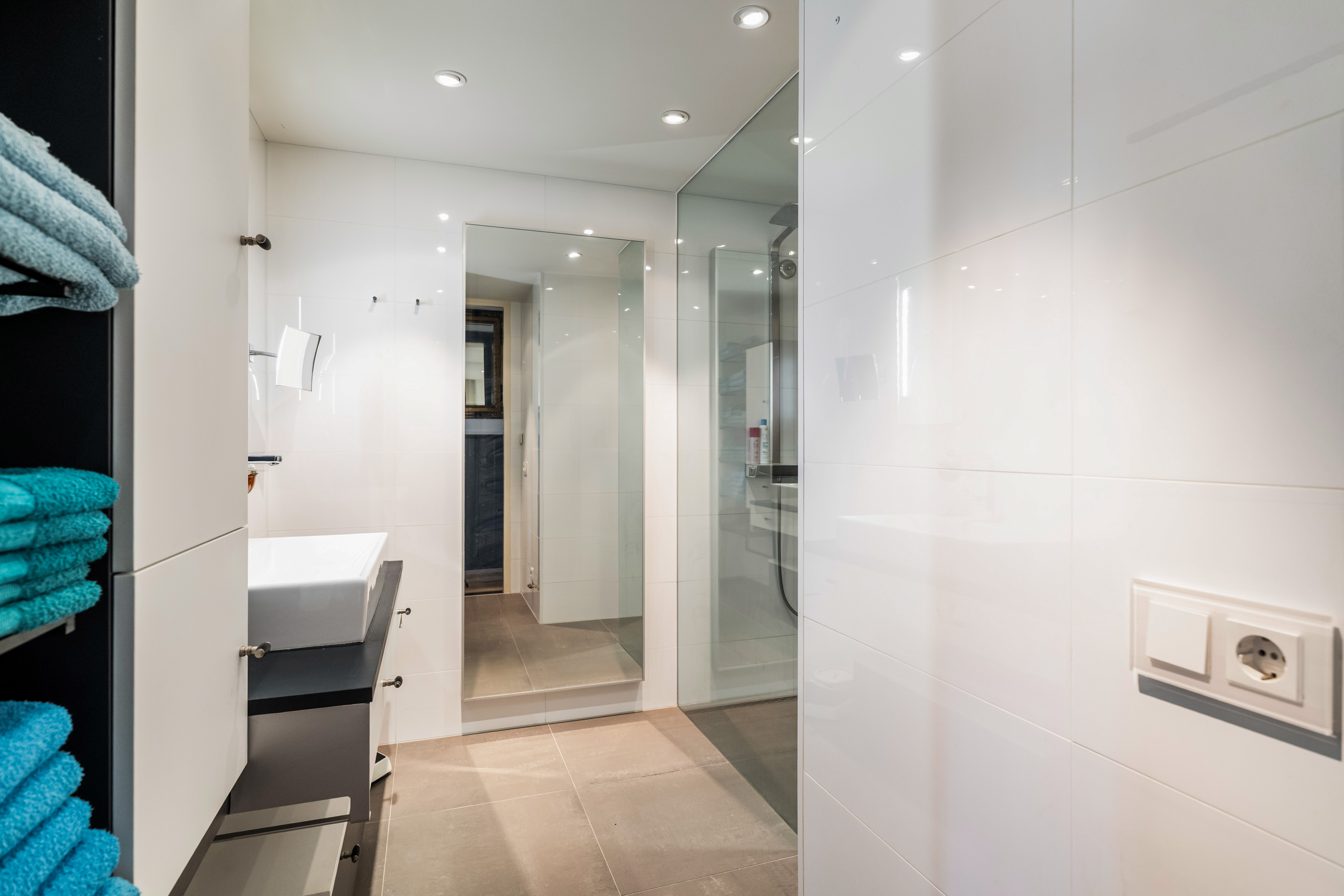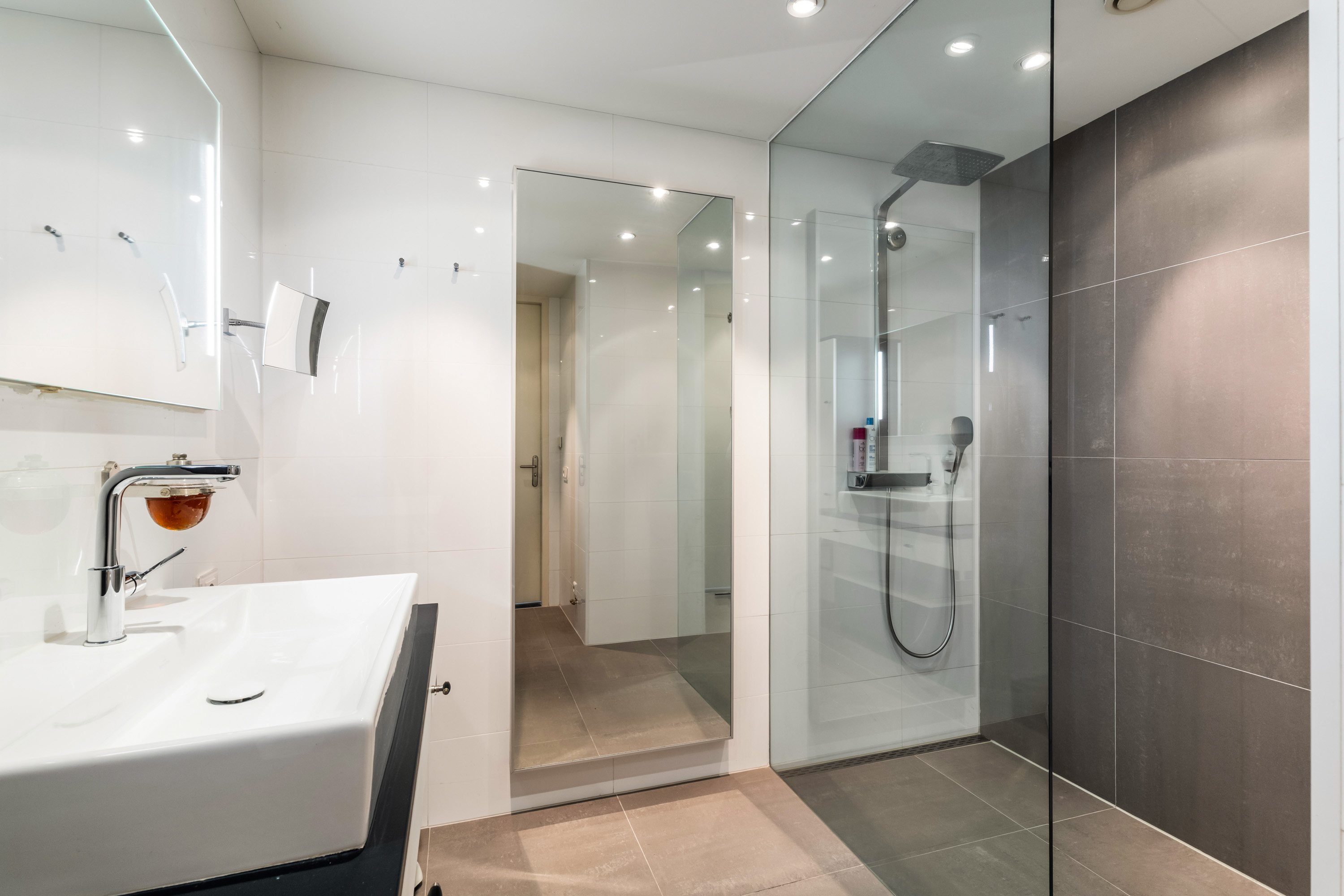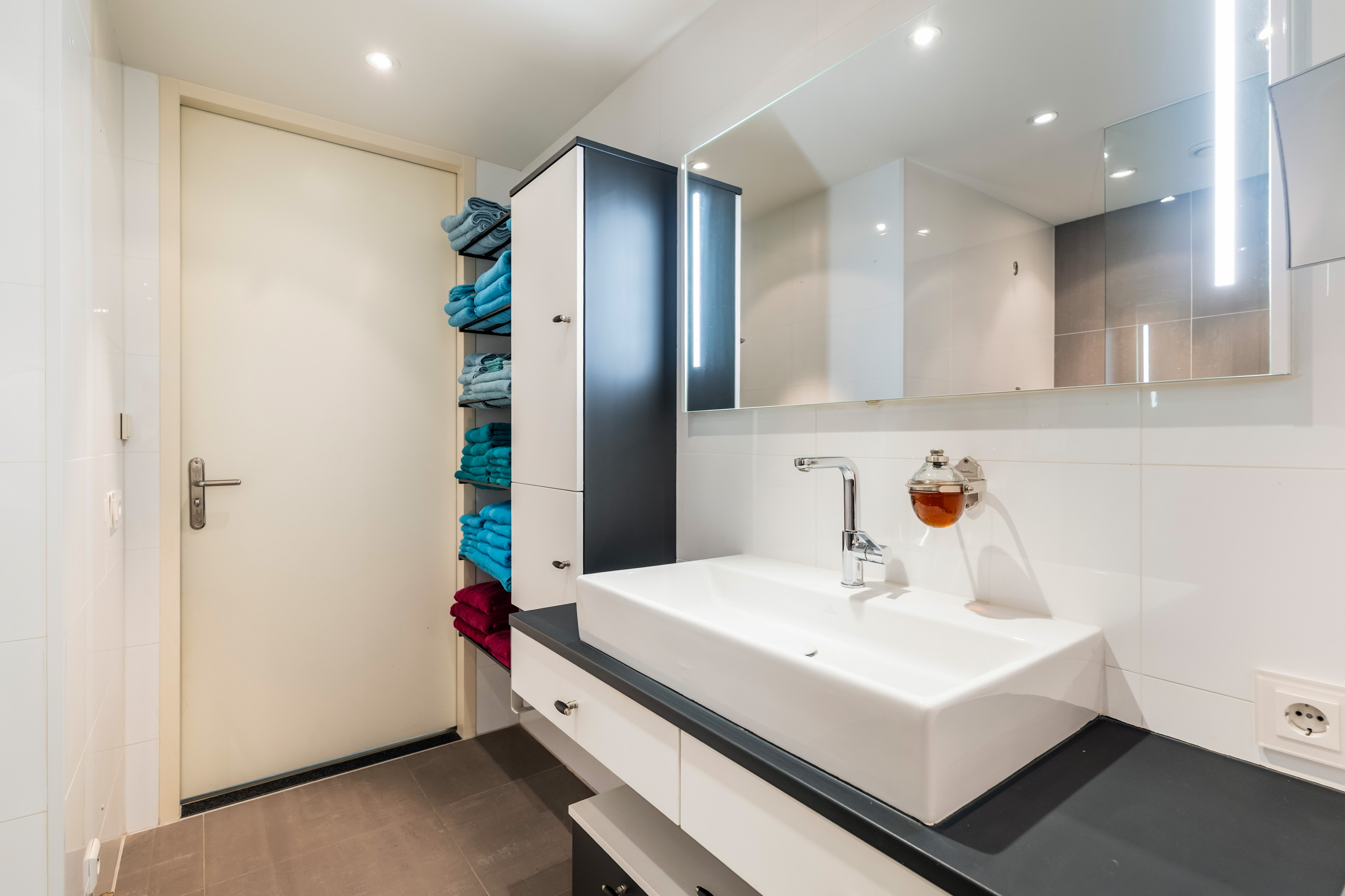 Aan de voorzijde bevinden zich 2 slaapkamers met openslaande deuren (draai-/kiepsysteem). Eén van de slaapkamers is ook nog voorzien van airconditioning en een schuifkastenwand. Luxe inpandige badkamer met inloopdouche met glazen scherm, brede wastafel met meubel, inbouwspots en mooi grote tegels.