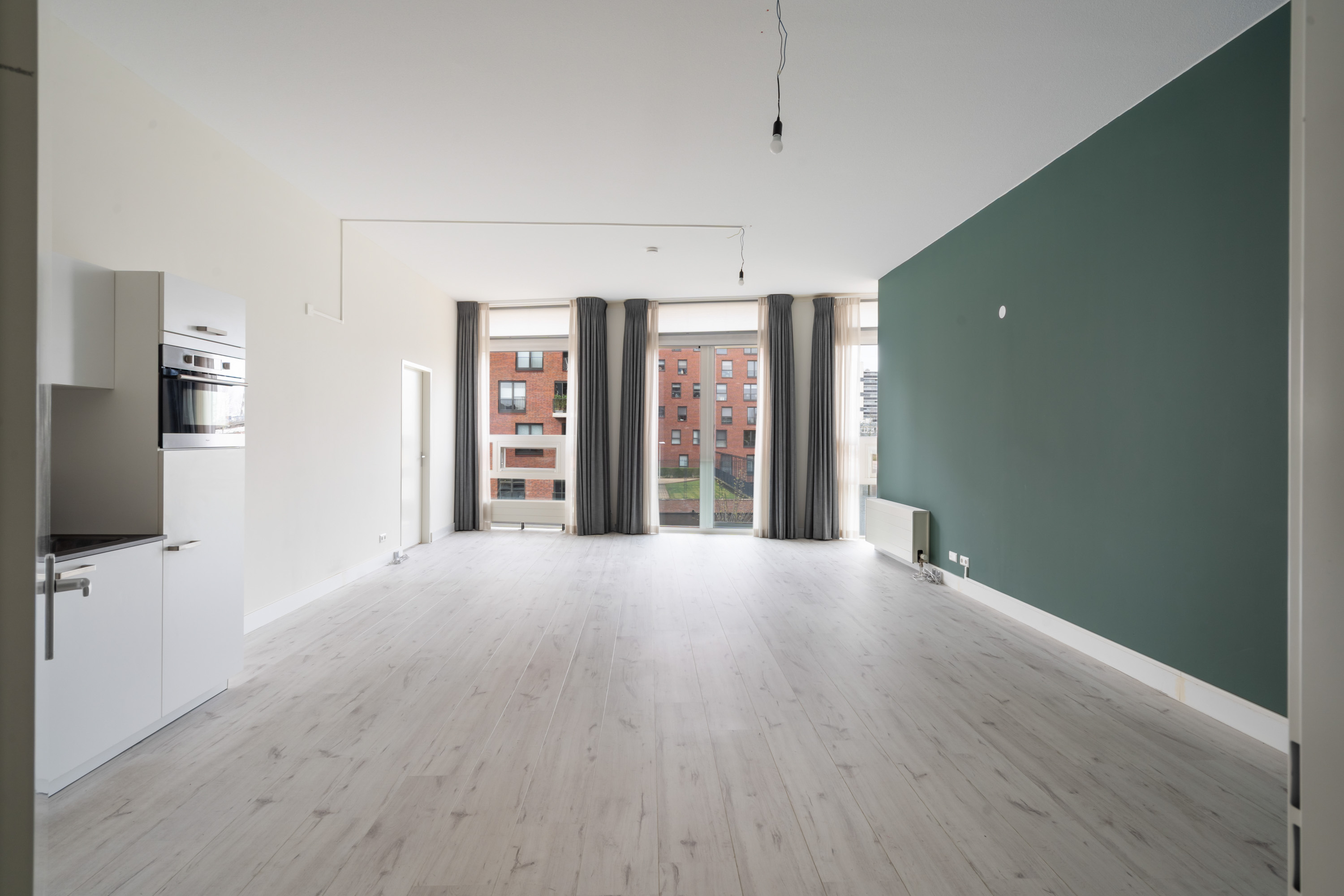 *Mooi hoge plafonds en heel grote ramen, waardoor het licht echt naar binnen stroomt.